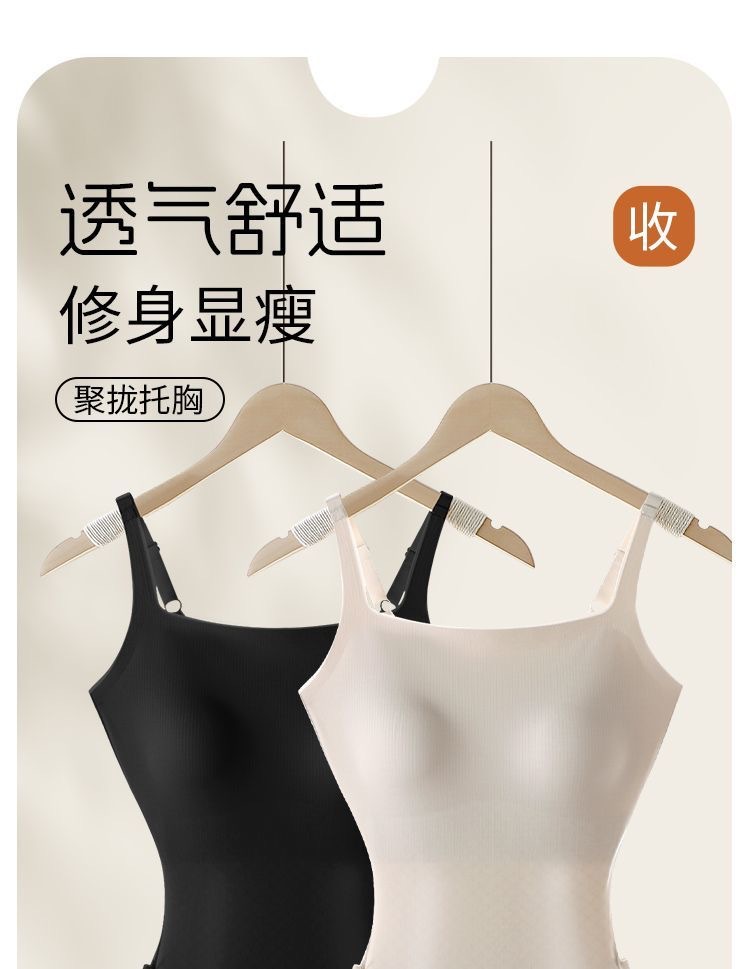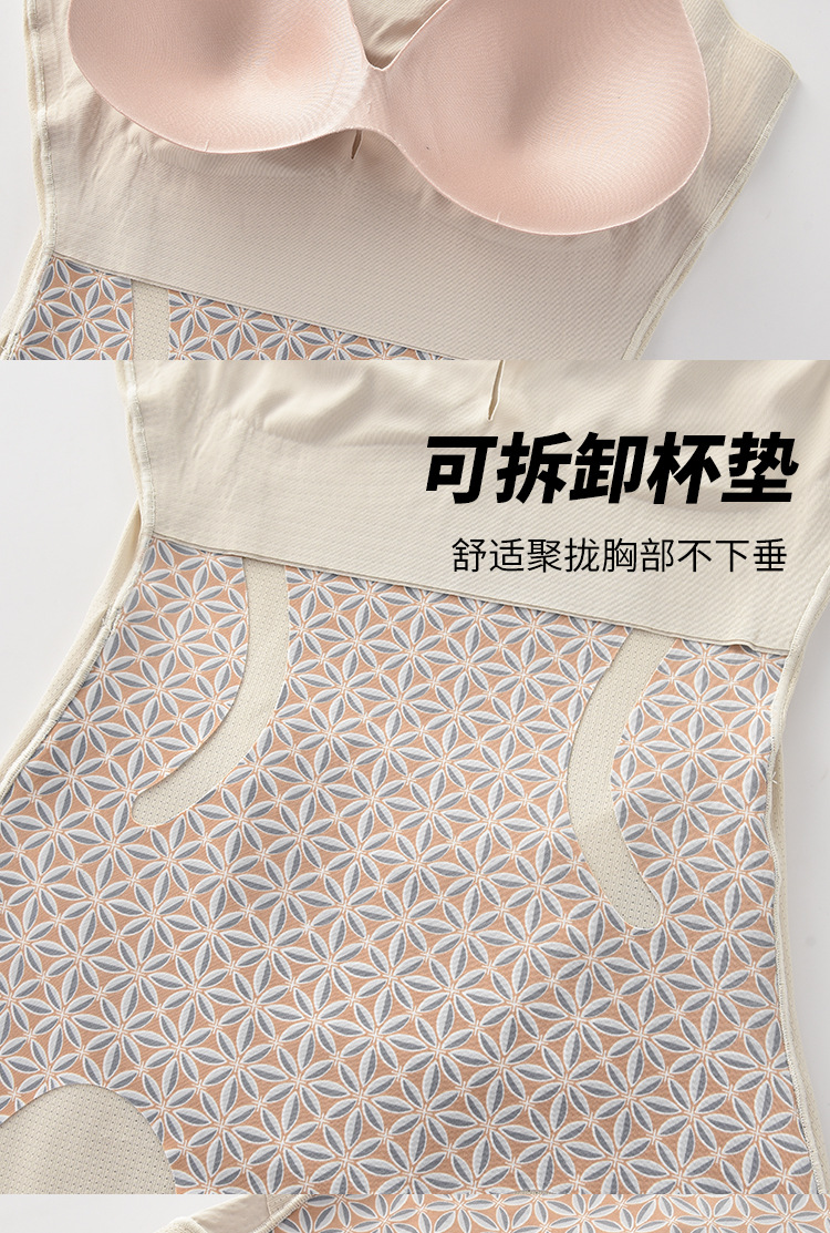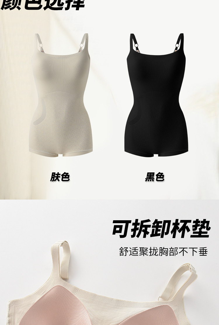 后脱式轻塑形三角后脱塑身衣自带胸垫可调节肩带聚拢塑身连体衣女