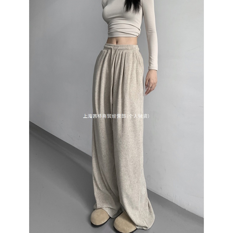 女性用タオルワイドレッグパンツ2025春秋新作ハイウエストルーズレイジーもち米スリムストレートカジュアルパンツ