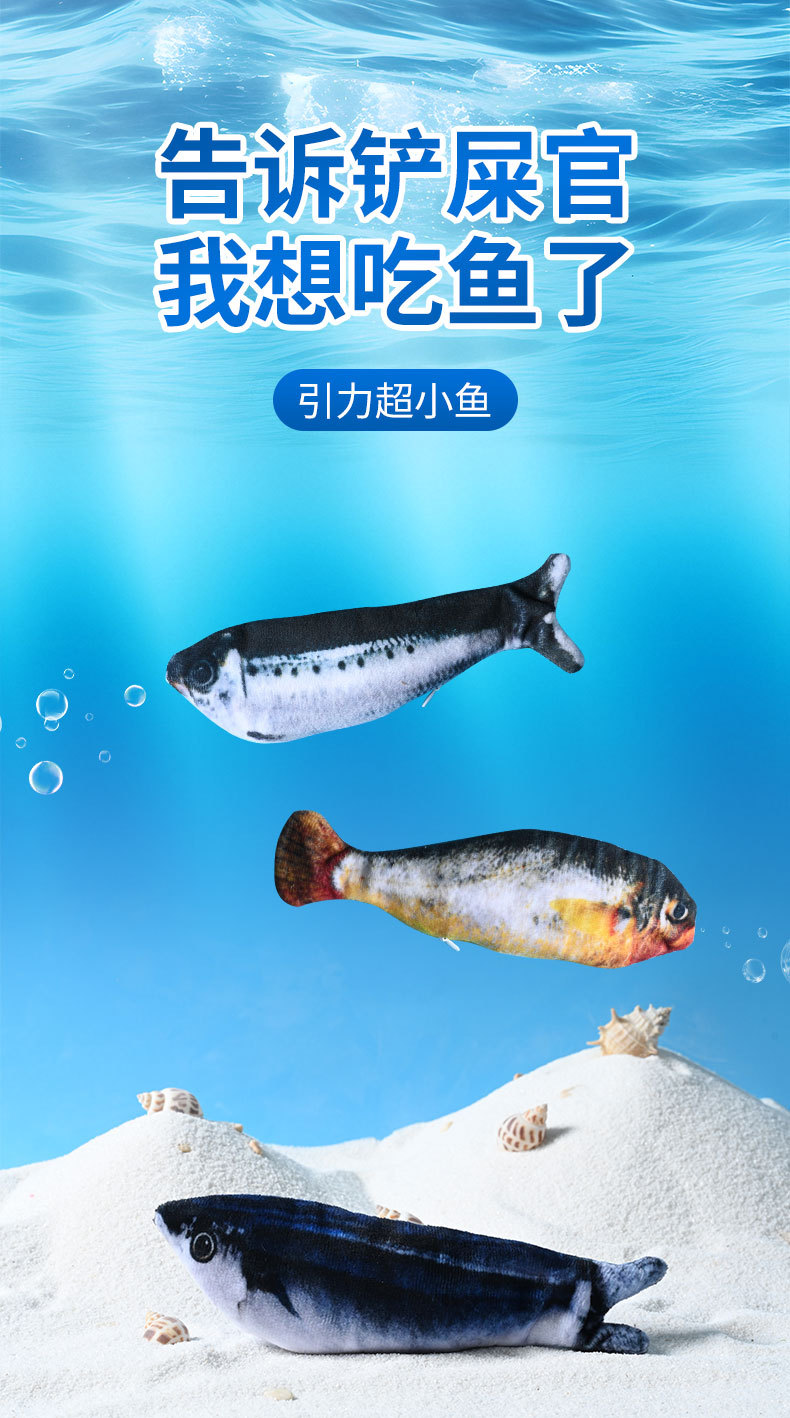 跨境新品引力超小鱼智能电动猫毛绒玩具自嗨解闷耐咬磨牙逗猫神器