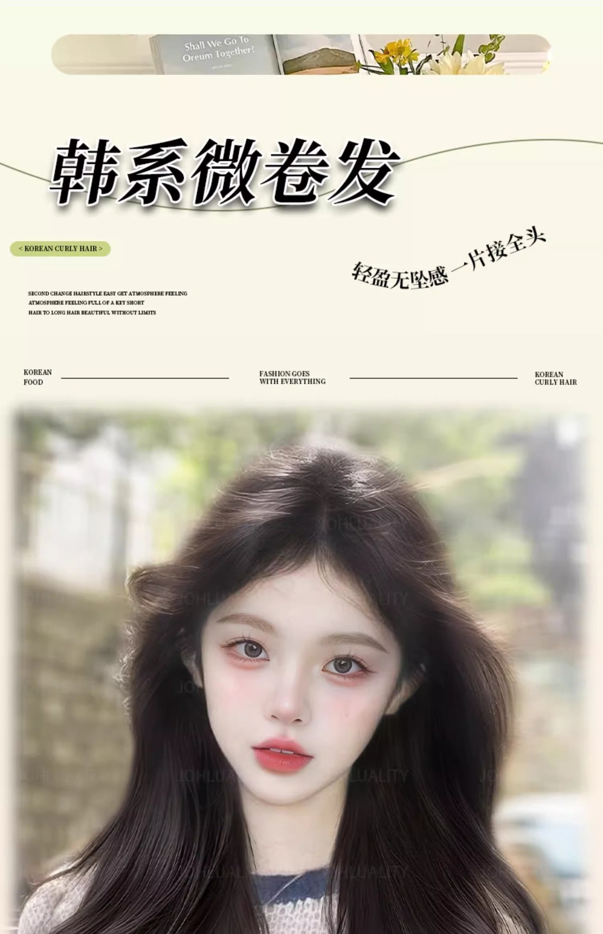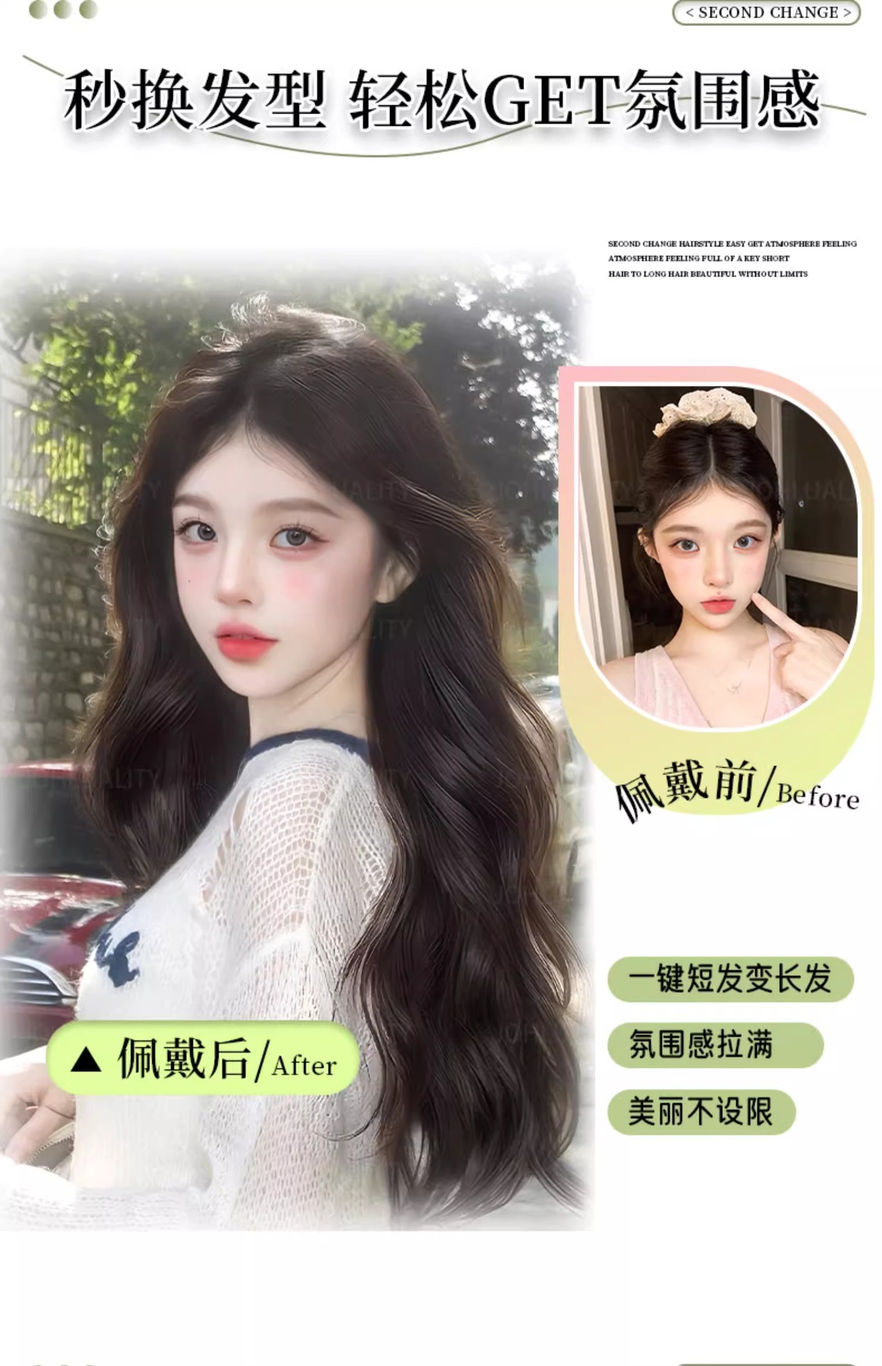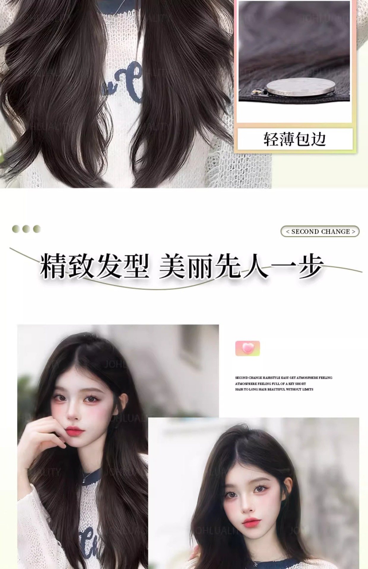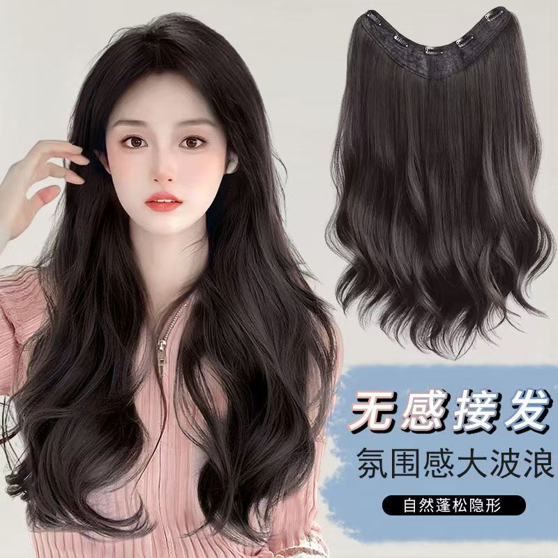 假发一片式U型微卷氛围感波浪蓬松无痕隐形补发假发接发片可马尾
