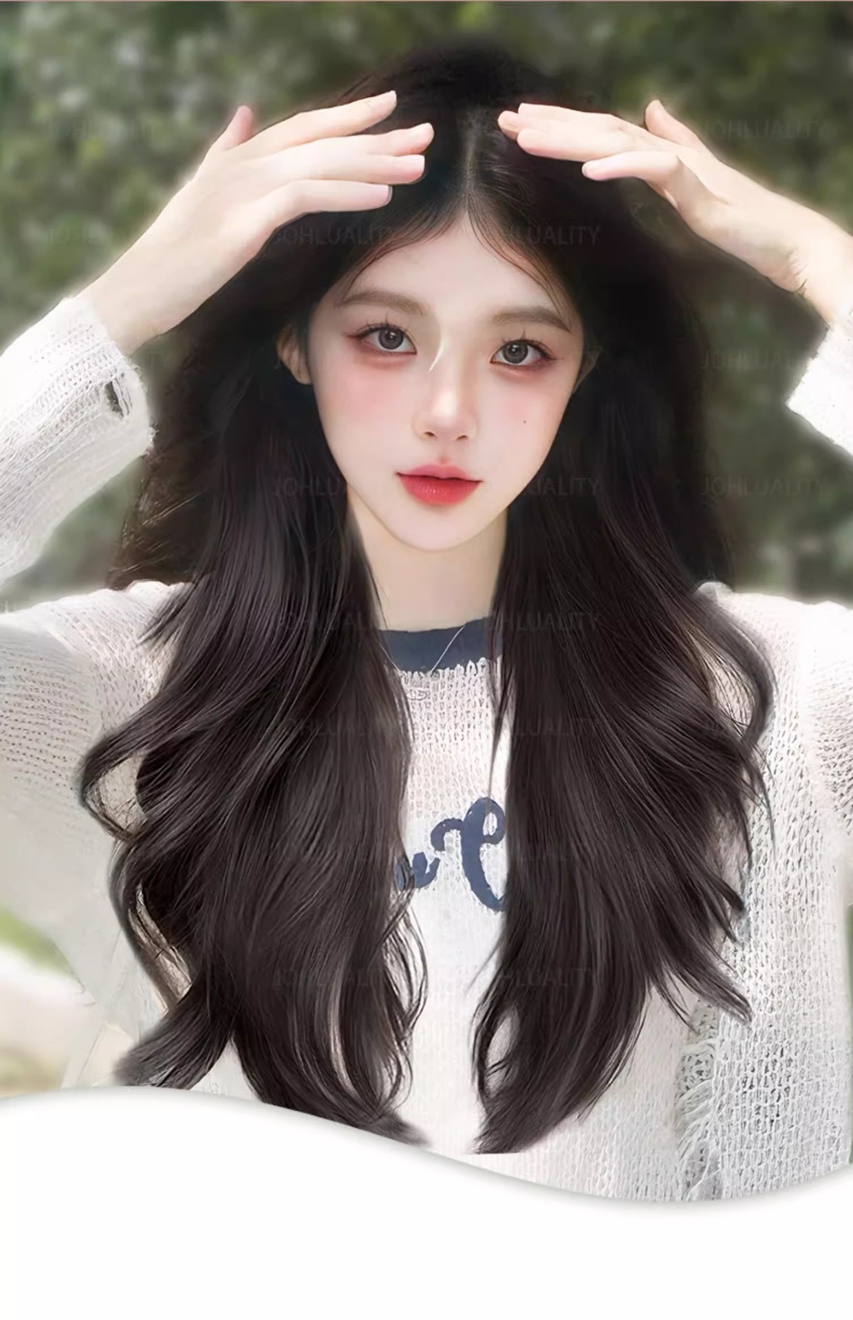 [アジア韓国人女の子] 新しい女性用フルヘッドギア、大きな頭皮をシミュレート、自然なふわふわ、大きなウェーブのかかったロングカーリーウィッグセット