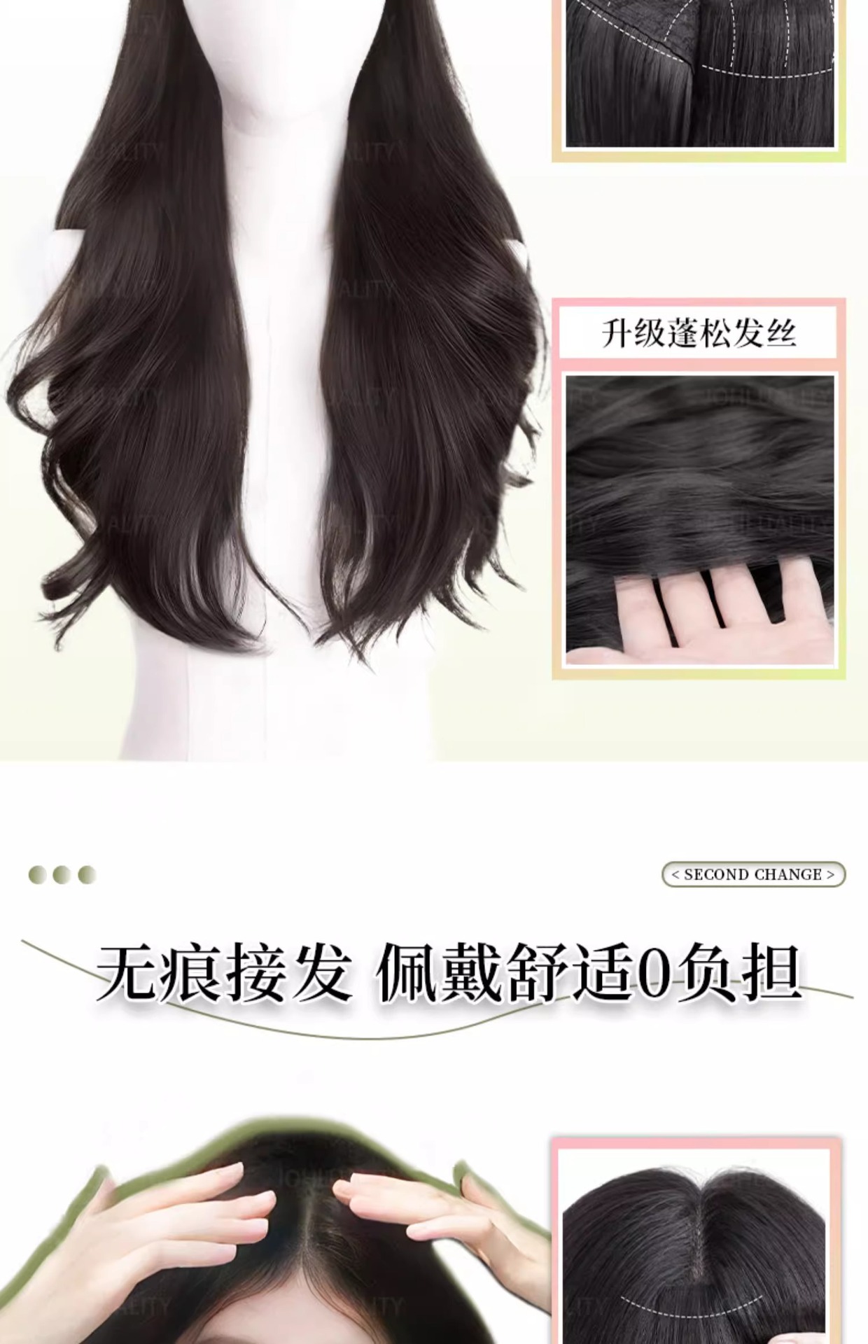 髪のボリュームを増やすウィッグ、女性用ワンピース、薄型、シームレス、ふわふわ、ハイレベル、ビッグウェーブ、人毛を模倣したエクステンション