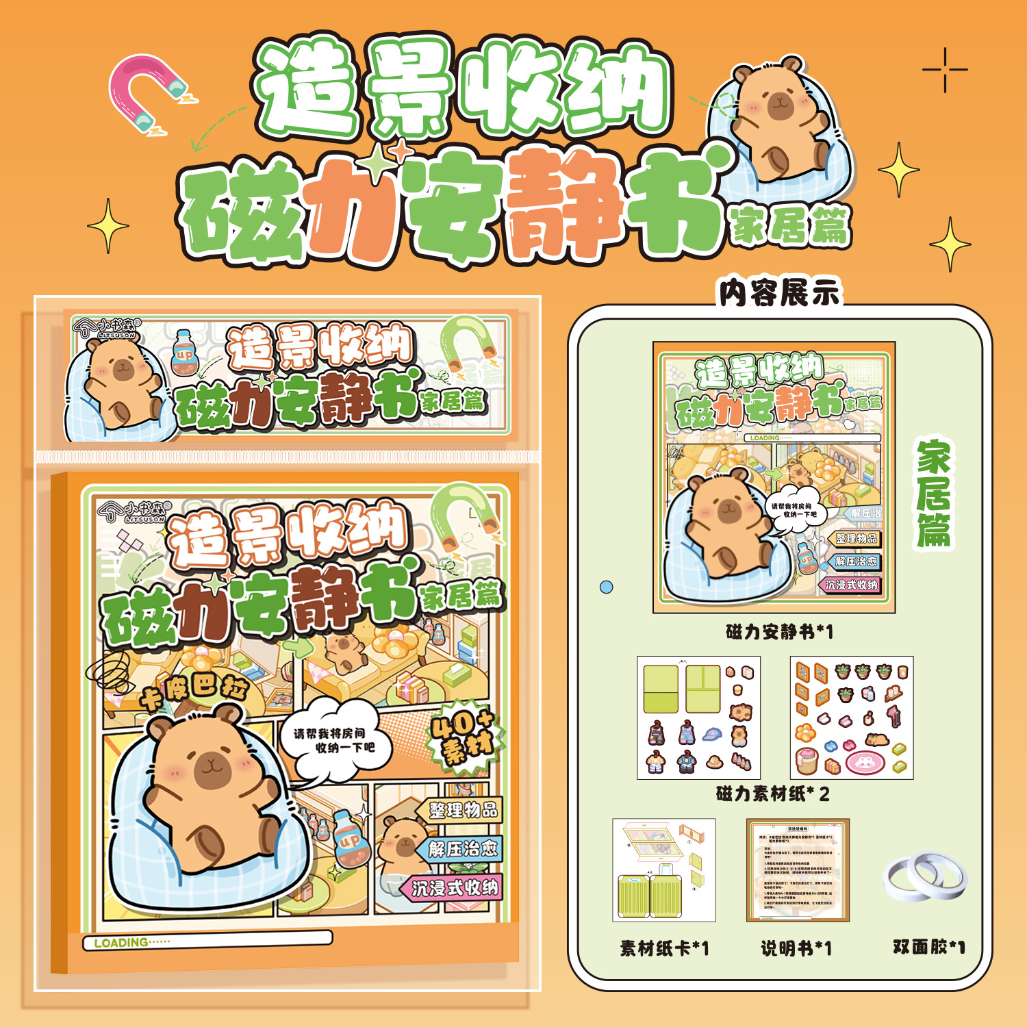 リトルブック セン磁気静かな本 DIY カピバラフリーカットハンドブック立体ブック装飾パターン女の子と子供