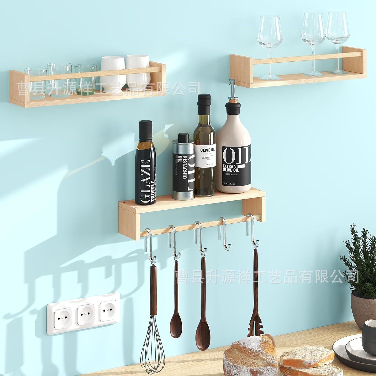 吊り下げ壁収納ラック無垢材フローティングラックバスルーム収納ラックキッチンリビングルーム壁掛けパーティション収納木製ラック