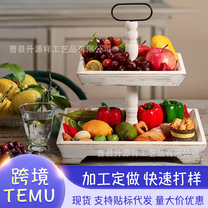 スポットクロスボーダー木製二層トレイ家庭用無垢材フルーツトレイ和風ケーキデザートテーブル装飾多層ディスプレイスタンド