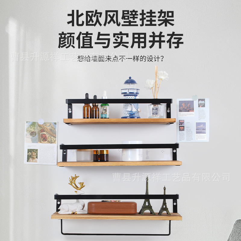 クロスボーダー木製収納ラック家庭用壁掛け壁掛けボード収納ラックアイアンアート組み合わせバスルーム収納ラック
