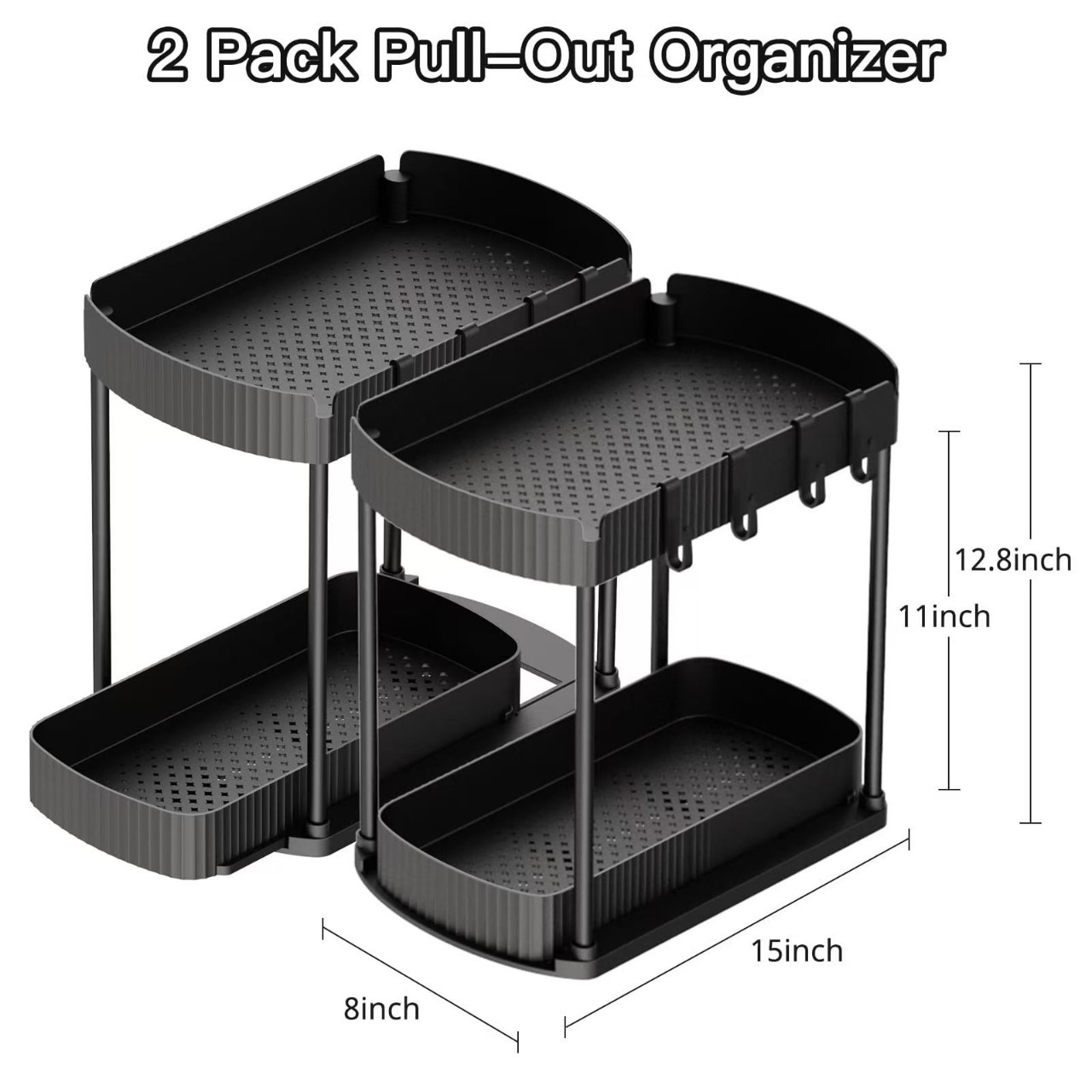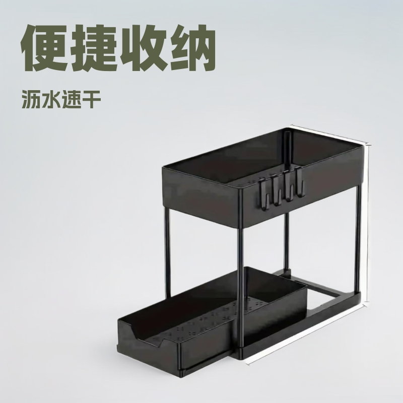 2段スライドラックシンク下水道収納棚フック付引き出し可能キッチン二重収納引き出し