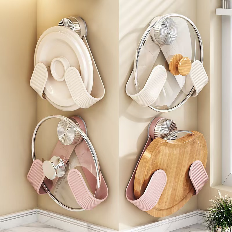 厚みのある吸盤式回転鍋蓋ホルダー 壁掛け式 穴あけ不要 キッチン収納ラック 収納ハンガー キッチン用品