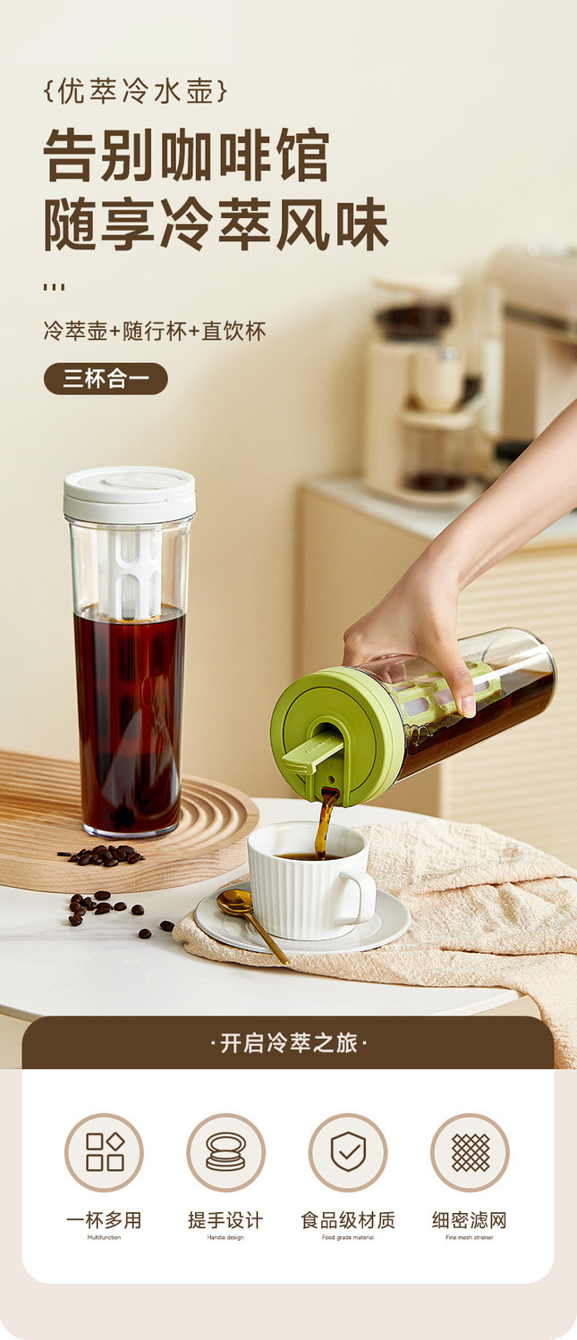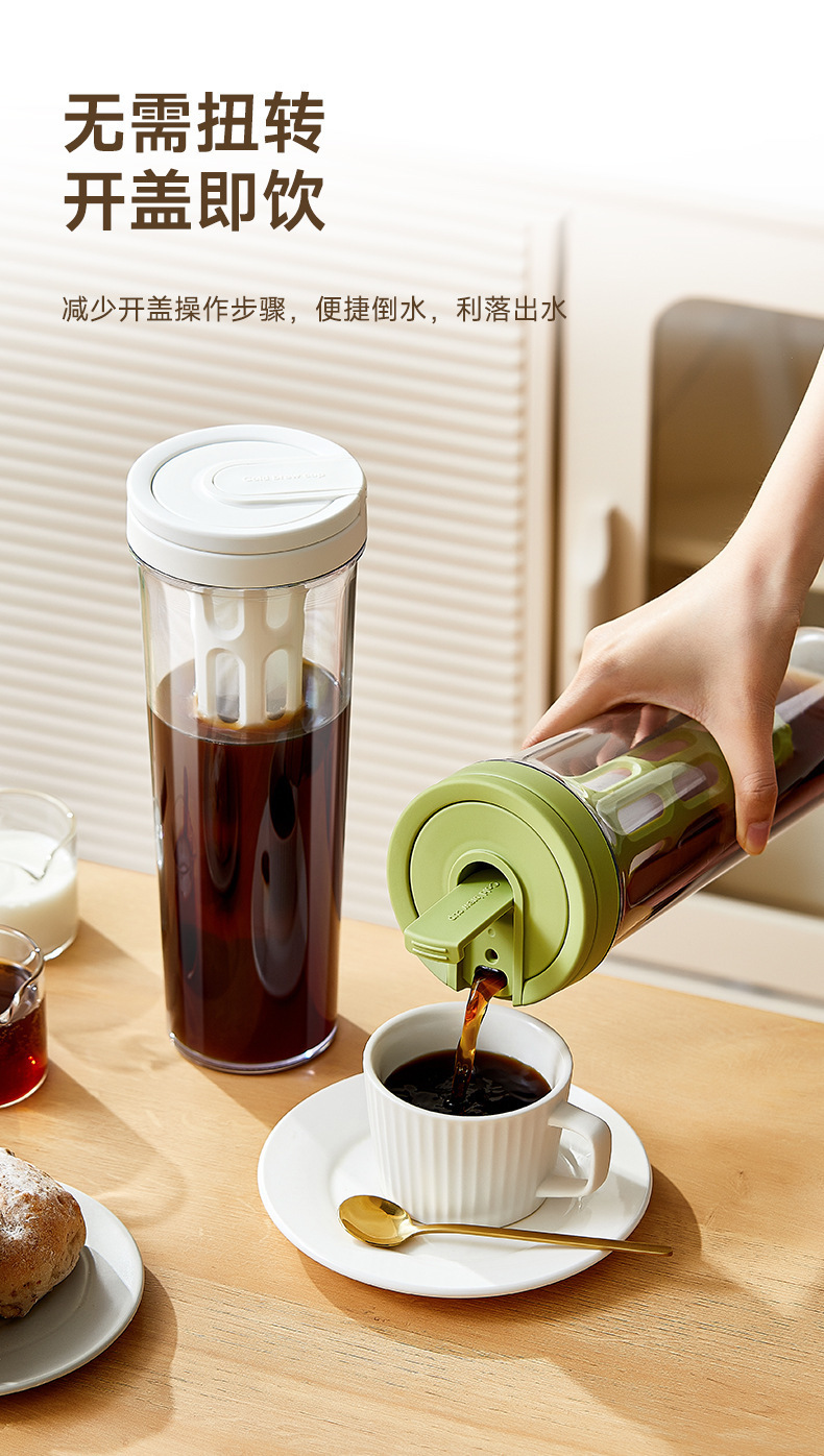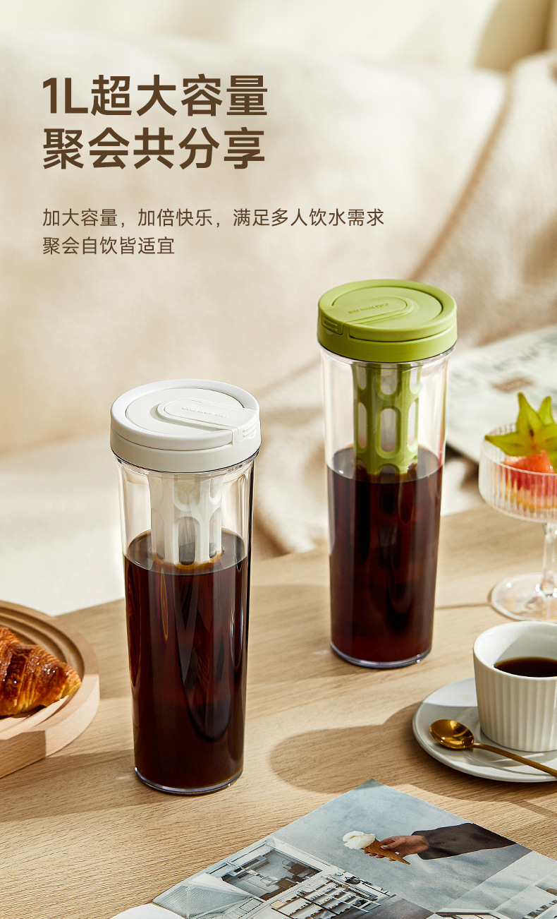 1L 水出しポット水出しカップ大容量濃厚ジュースミルクティーファインフィルターポータブル家庭用屋外カップ蓋付き
