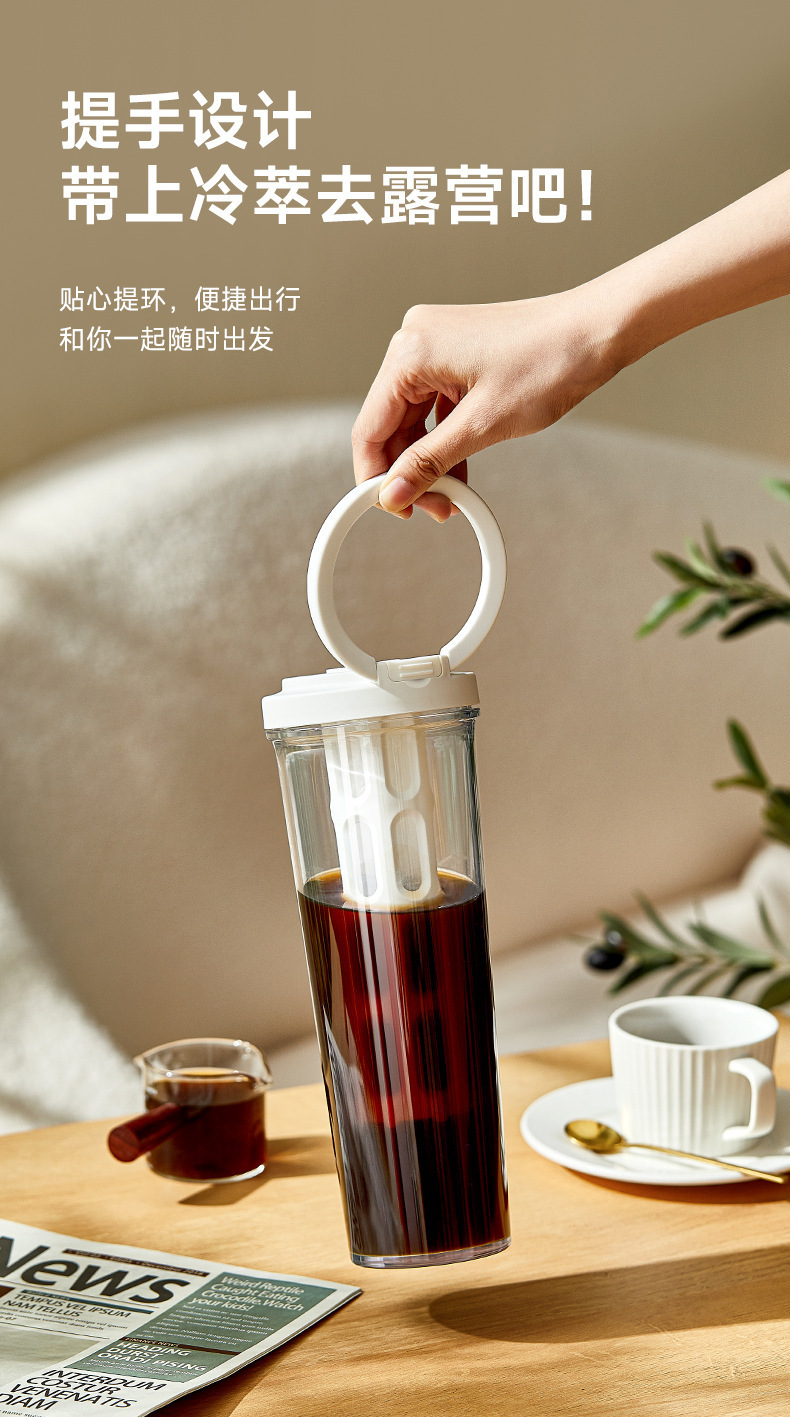 新しい冷たいコーヒーポットは冷熱に耐えるティーポット家庭用の冷たい泡ポットの果物茶の冷たい抽出瓶に持ち手付きの屋外コーヒーポット