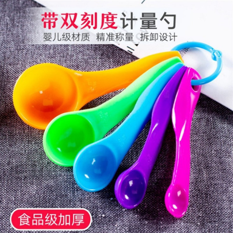 キッチンベーキングツールカラー計量スプーン5点セットスケール付きプラスチックミルクスプーン計量スプーン子供のおもちゃセット