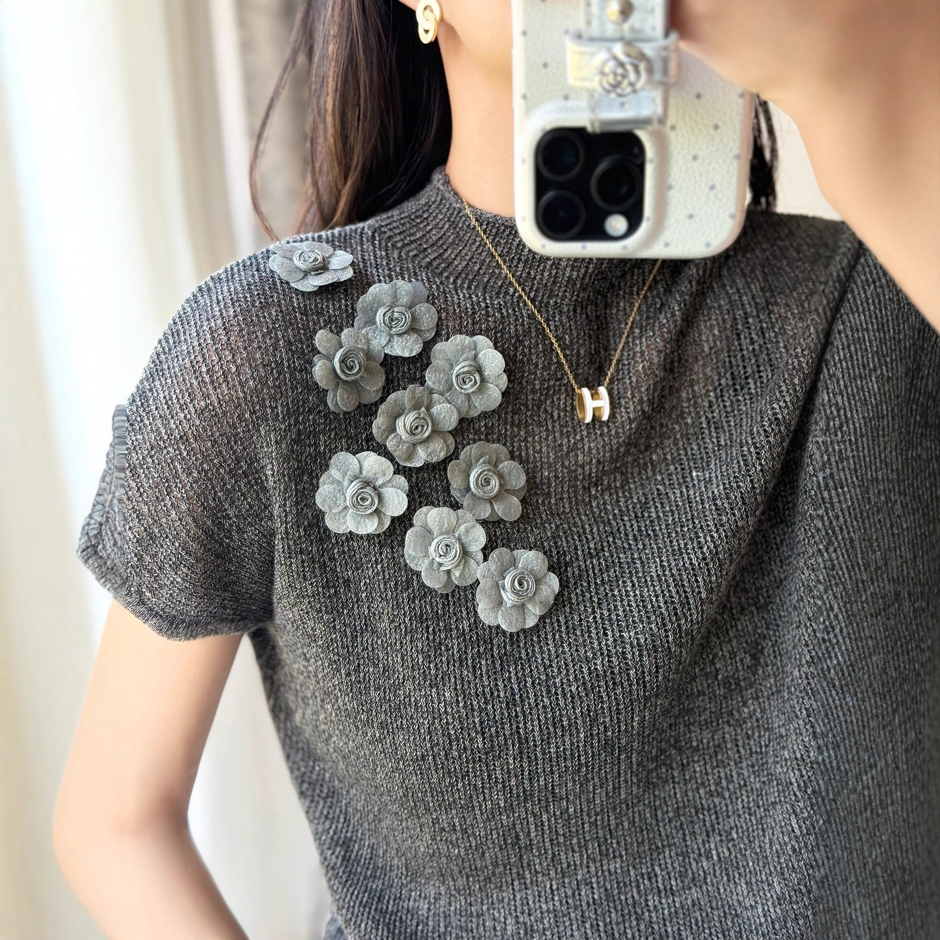 港米服饰/2025秋季新款女装 勾花设计感针织衫女高级内搭小衫