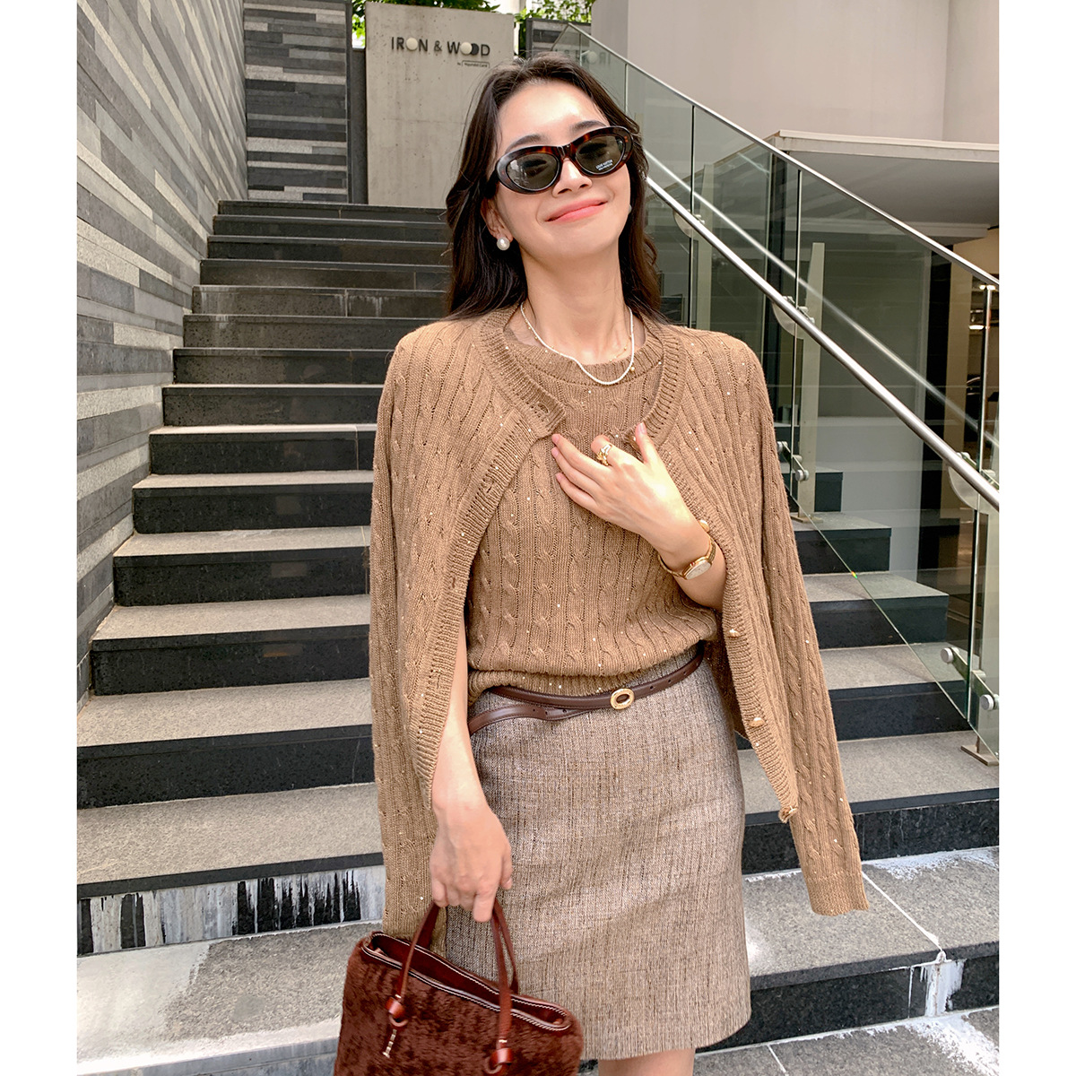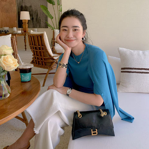LICKYSENIOR 評判再購入 2025春新作 ウール半袖Tシャツ/ニットカーディガンスーツ長袖