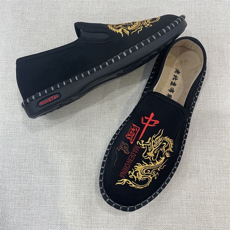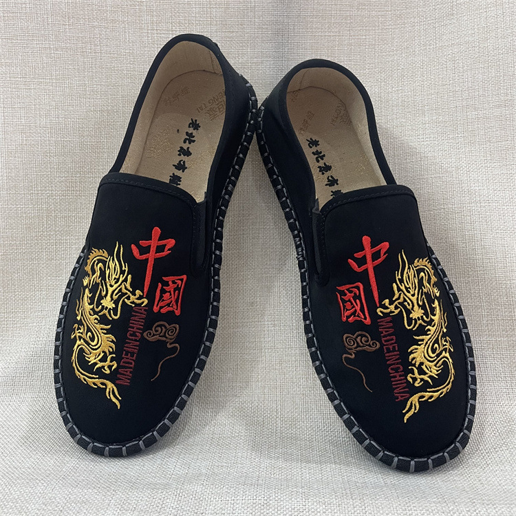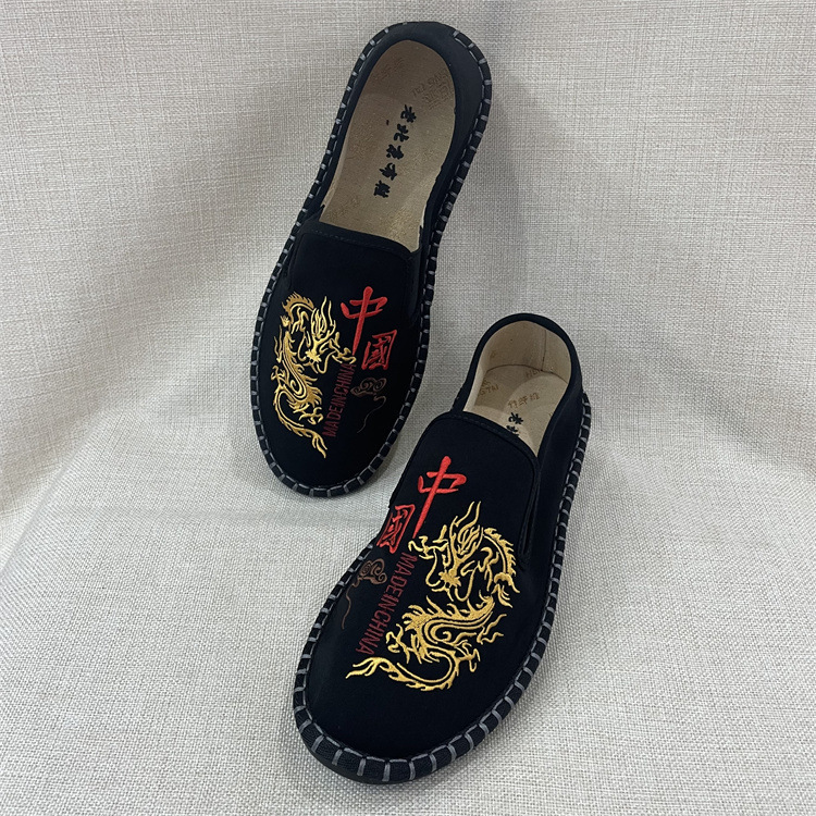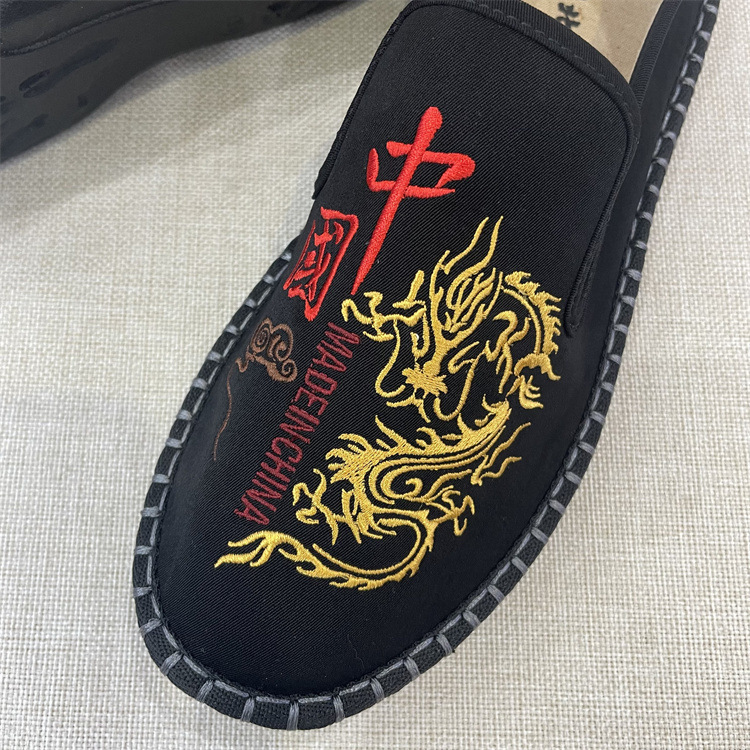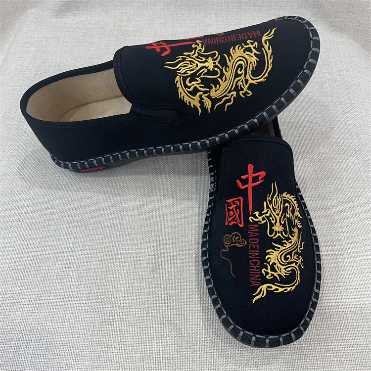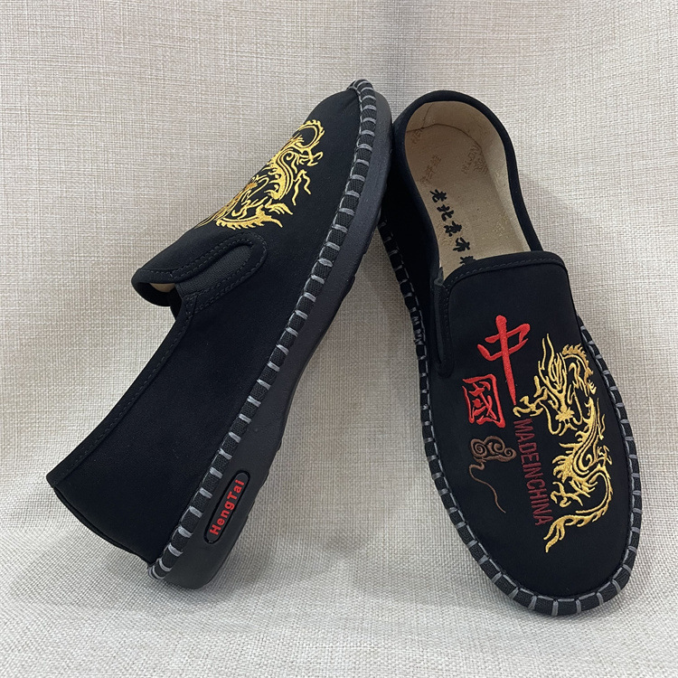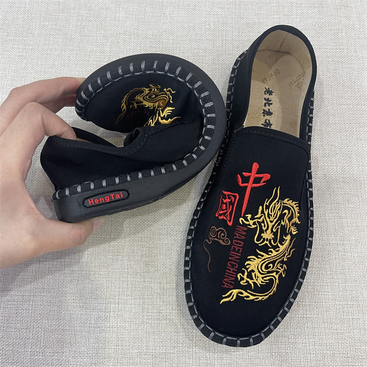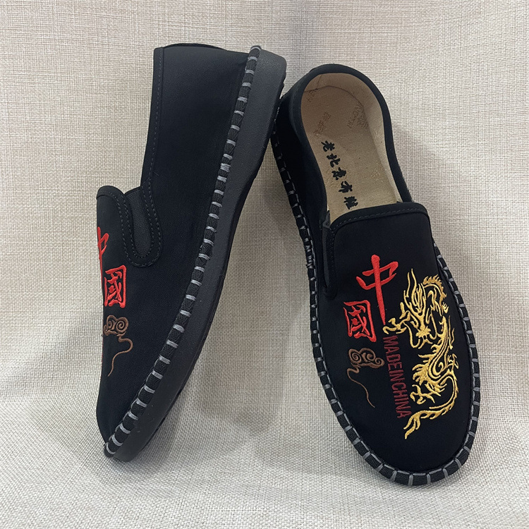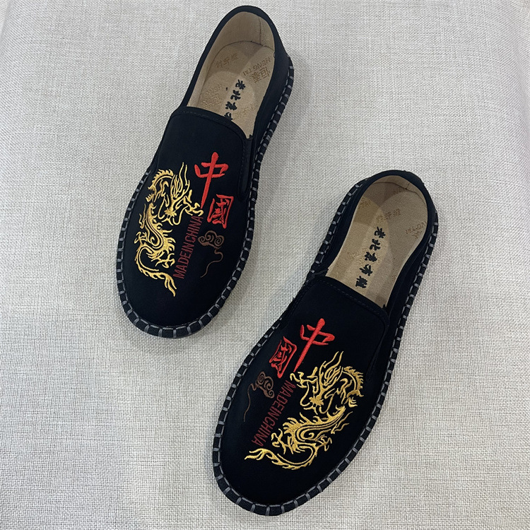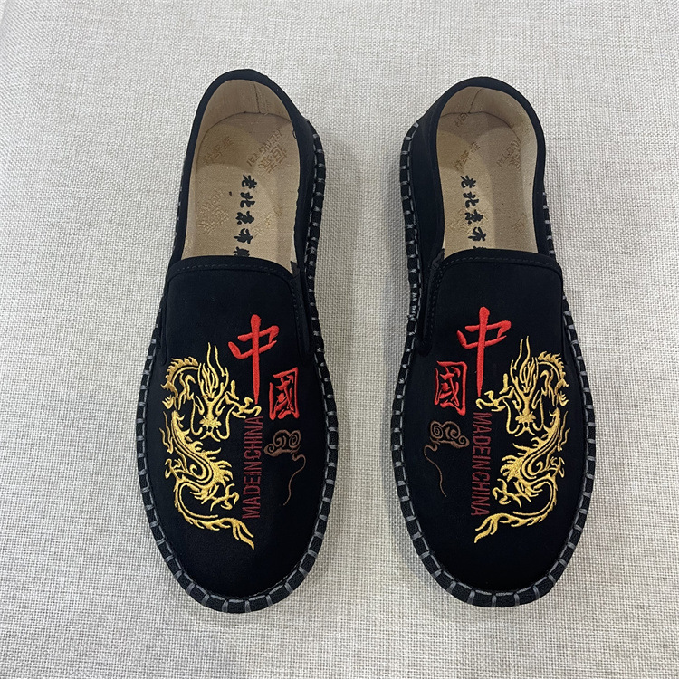 2026年新作 国潮風 老北京布靴 純布刺繍 フラットソール ラバーソール 顔文字刺繍 メンズ 民族風