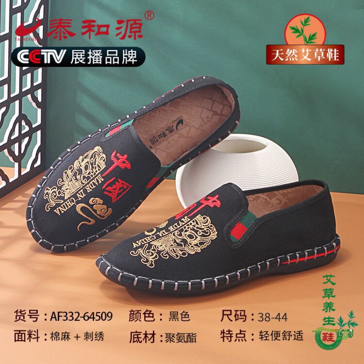 老北京手工千层底刺绣中国民族风春秋低帮透气软底养脚男士花布鞋