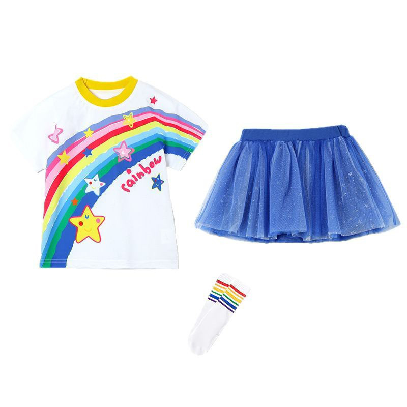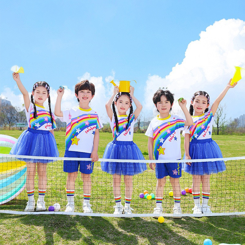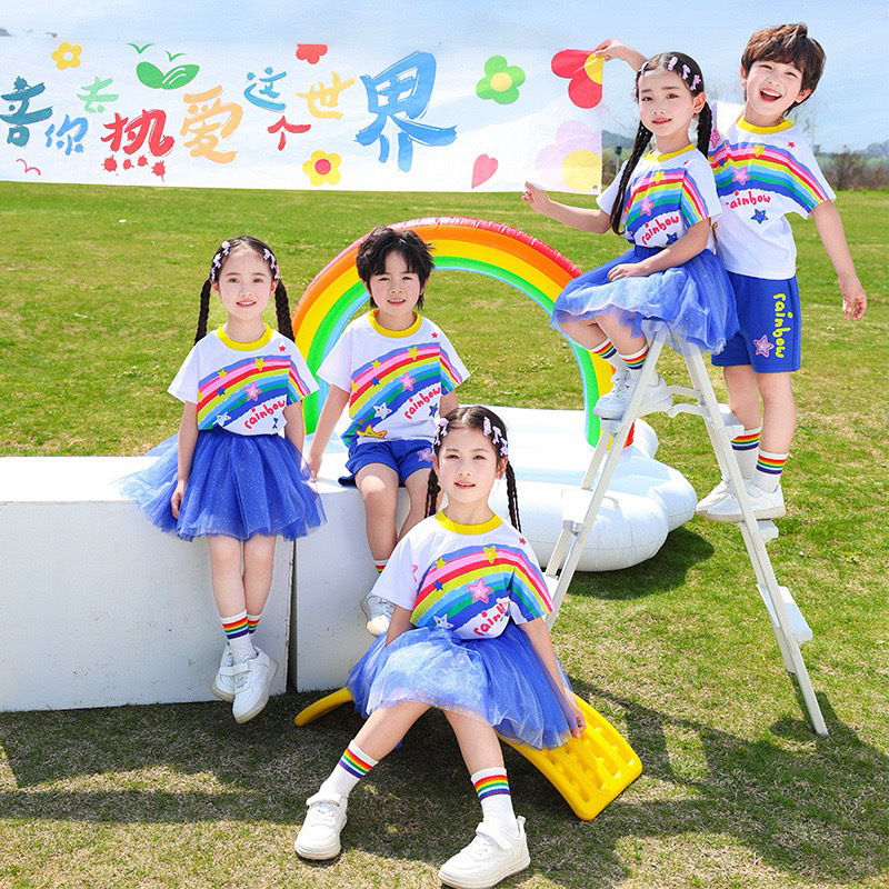 新しい子供の卒業式子供のパフォーマンス衣装女の子プリンセススカートチュチュスカート幼稚園ダンスパフォーマンス衣装レインボースカート
