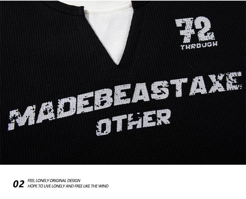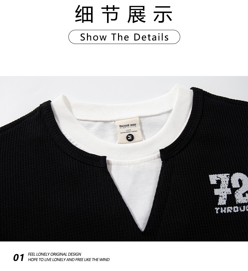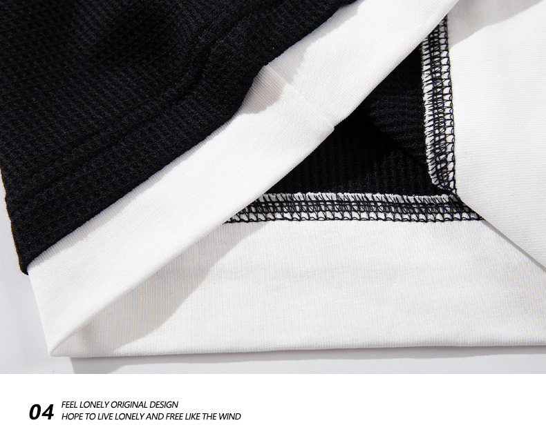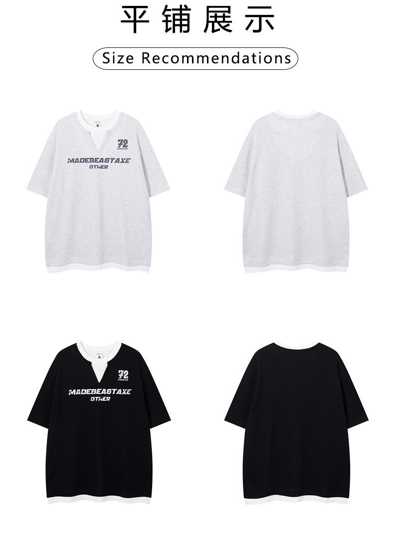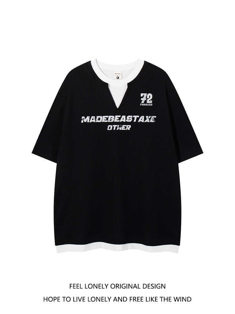 アメリカのトレンディなブランド偽ツーピーススプライシング半袖Tシャツレトロ2025夏の新しいカップルニッチ多用途トップス男性用
