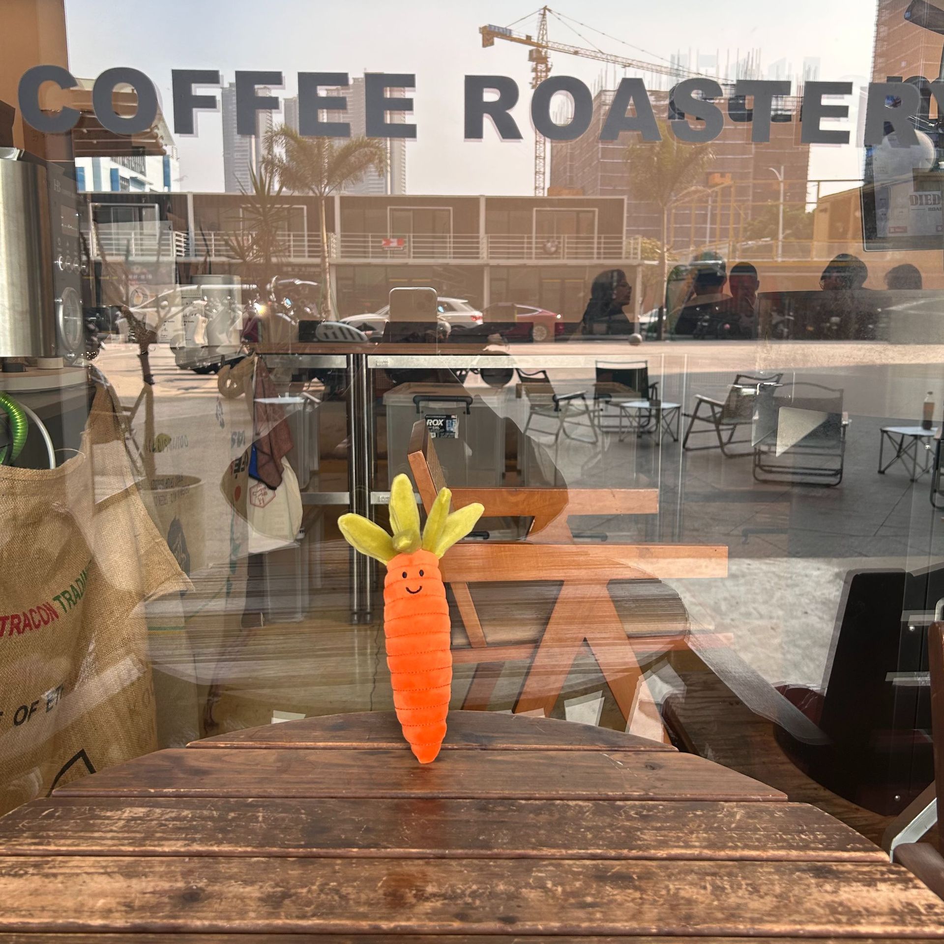 香菜ニガウリのおかしな創意野菜シリーズのペンダントが可愛いカバンに飾られています。