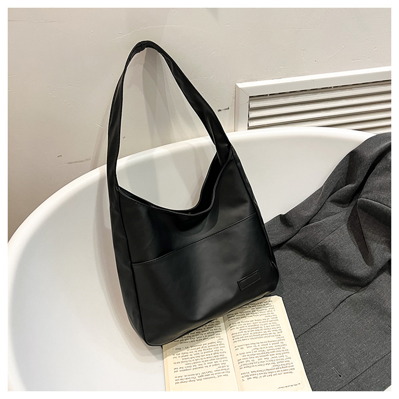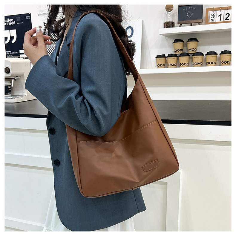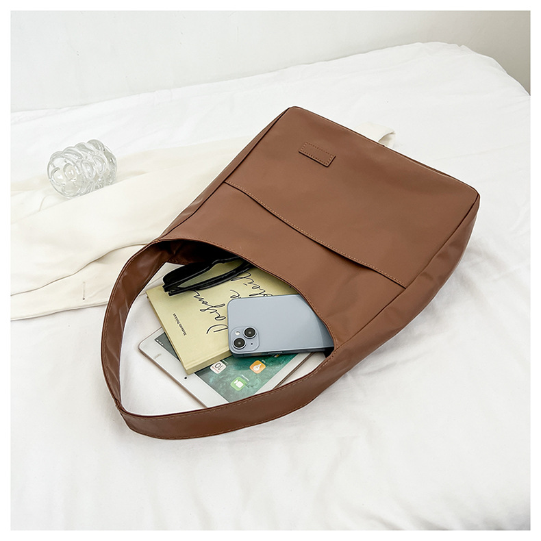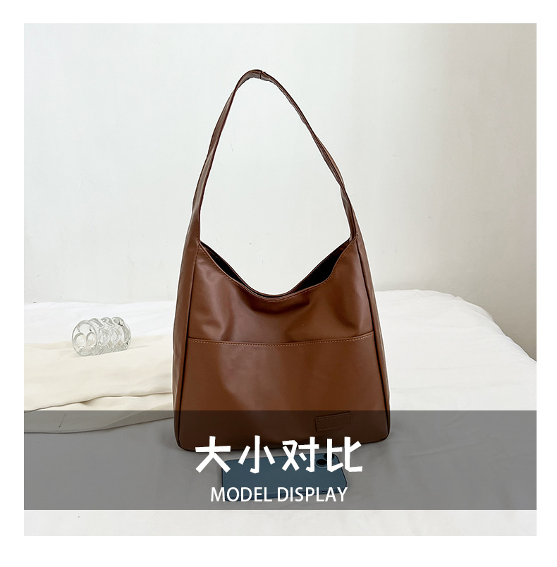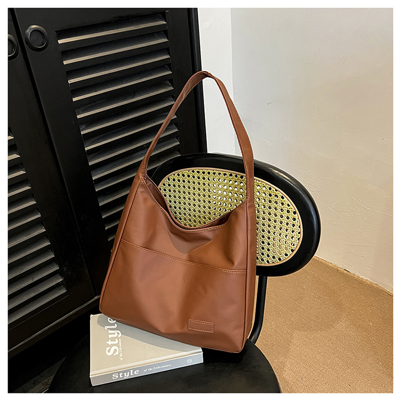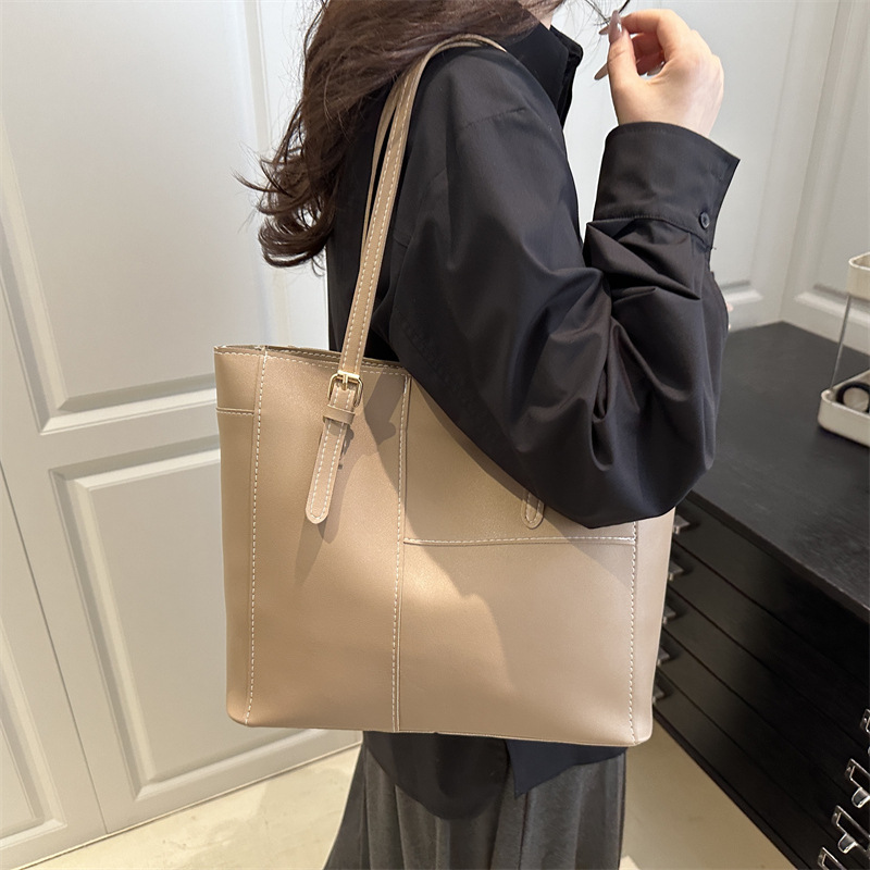 大容量レトロ純色秋新作質感トートバッグ大学生授業シングルショルダーバッグシンプルカジュアルバッグ