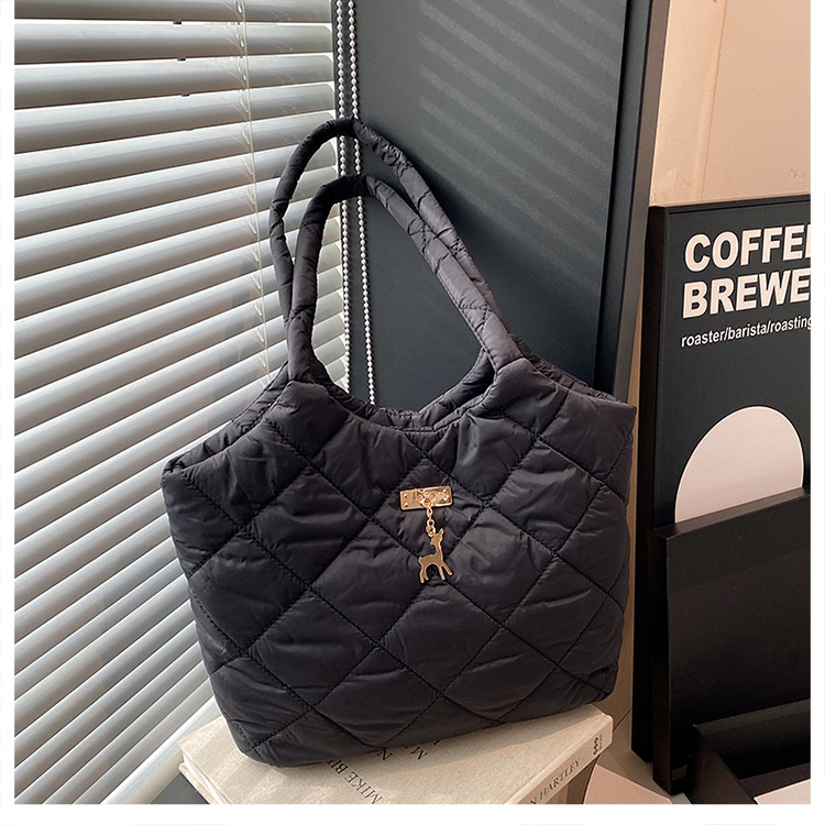 小鹿托特包女2025新型大容量菱格刺繍糸片肩包学生の授業通勤バッグ