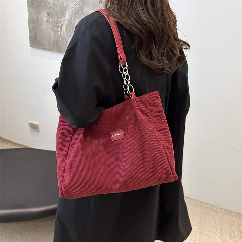クロスボーダー コーデュロイバッグ レディースバッグ 2025年新作 大容量 レディースショルダーバッグ 学生トートバッグ トレンド要素