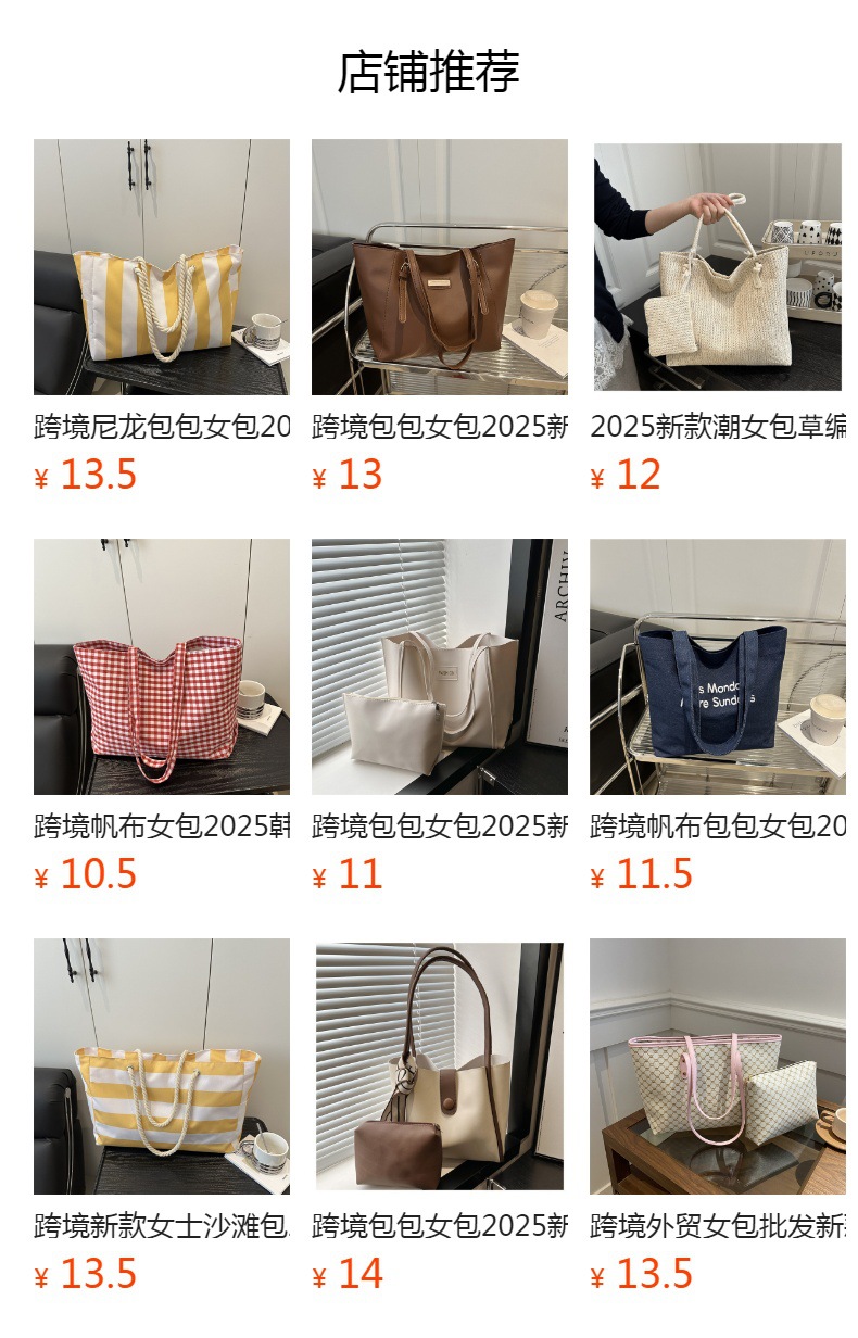 クロスボーダー新品レディースビーチバッグ2025高级感大容量通勤旅行トートバッグ収纳ショッピングバッグ
