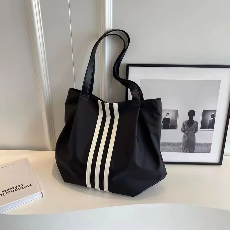 国境を越えた新しいバッグ、レディースバッグ、旅行やショッピング、スリーストライプスナイロンバッグ、大容量オックスフォード布トートバッグ