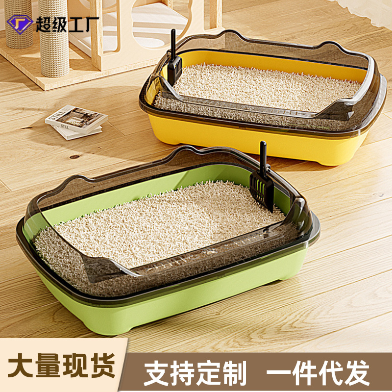 半密閉型猫トイレ、特大飛沫防止猫トイレ、高さのあるバッフル、取り外し可能で洗える厚みのあるプラスチック製猫トイレ