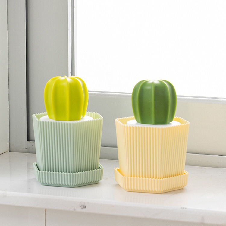 ナノスチールワイヤーサボテン型クリーニングブラシ 家庭用キッチン多機能ブラシ 鍋洗い・食器洗い・鉢植え洗い用 ハンドル付きクリーニングブラシ