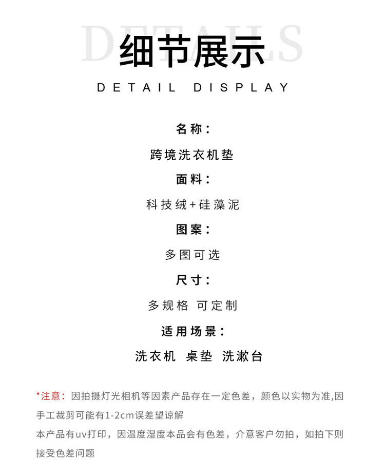 跨境代发纯色滚筒洗衣机防尘垫微波炉隔热垫家用硅藻泥软垫床头柜