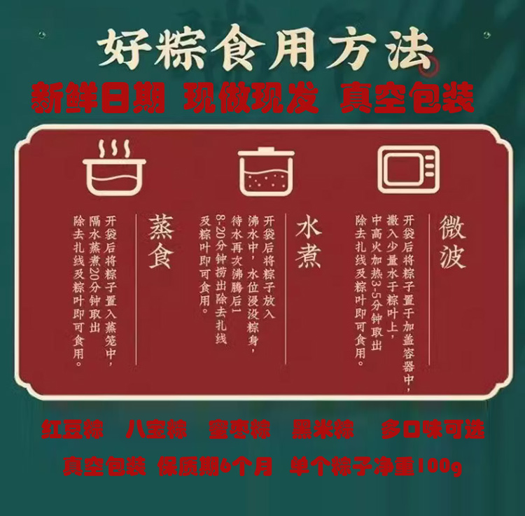 端午節の団子、新鮮な小豆団子、蜜ナツメ、黒米、八宝、マルチフレーバー朝食インスタント真空パックもち米団子
