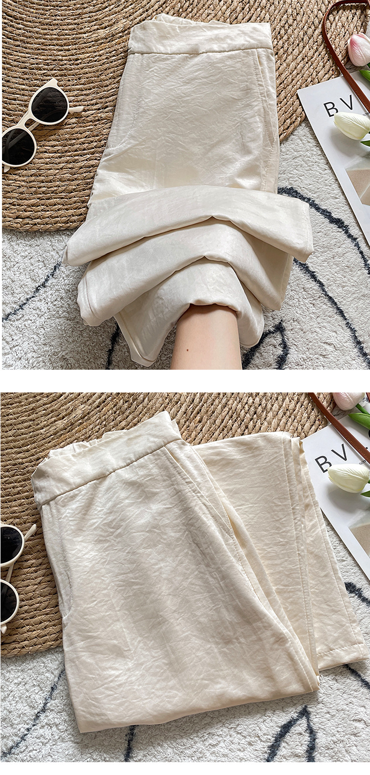 夏用薄手日本製綿麻パンツ ラミー ストレート ドレープ 9点パンツ
