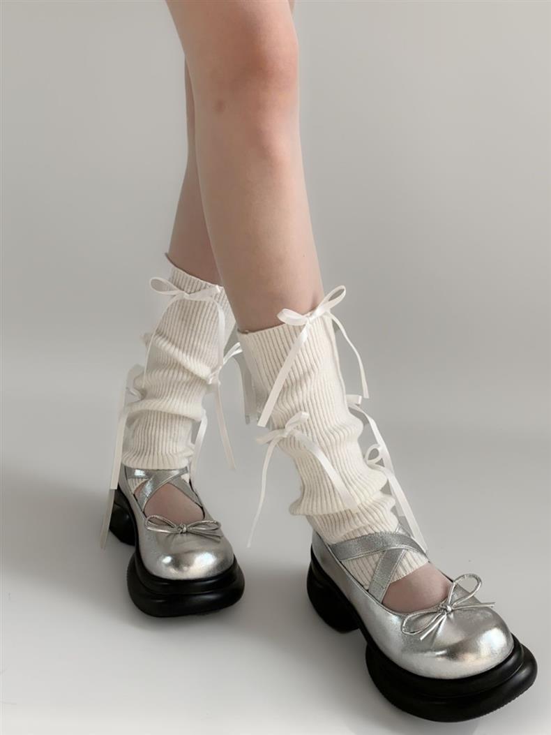 2025 ソックス 春秋 リボン バレエ スイート JK カーフミッドチューブ ロリータ ニット 薄手 パイルソックス