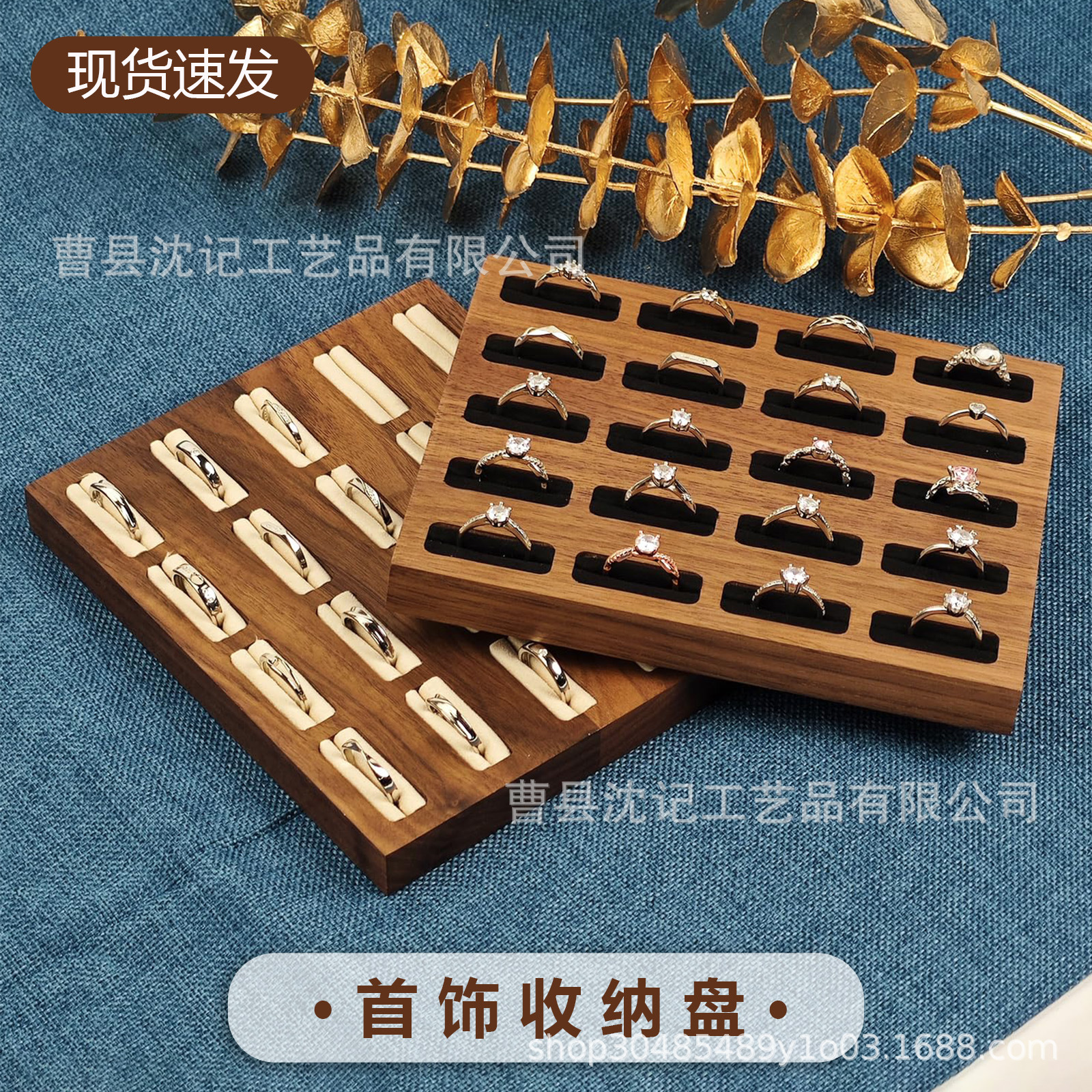 木制首饰收纳盒戒指置物盒饰品展示珠宝道具摆摊耳钉镯子分隔托盘