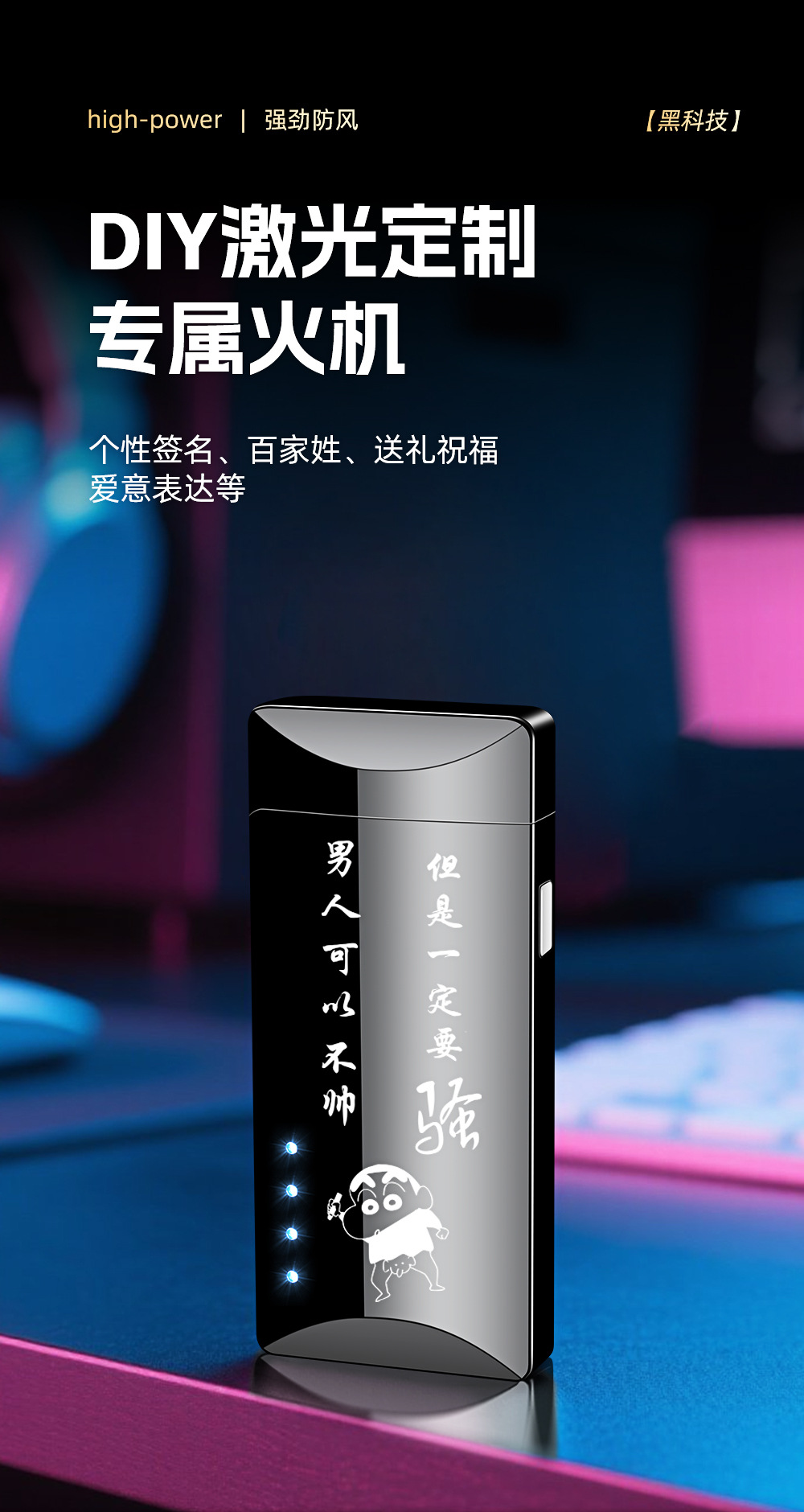 2583 超薄型クリエイティブスマートタッチセンサースイッチダブルアーク USB 充電ライター電源表示卸売