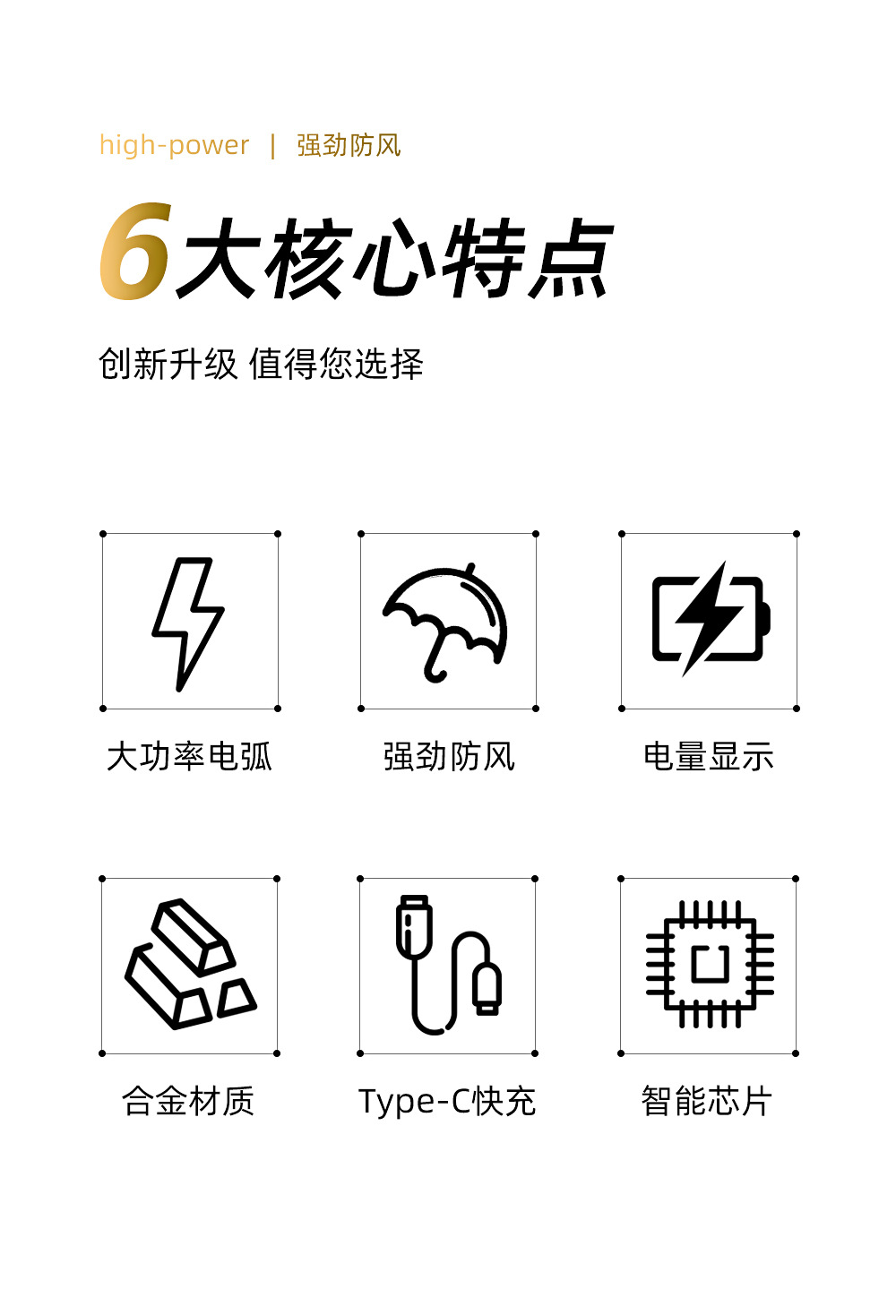 ハイパワーアークライター USB 充電アーク防風ライター屋外電子タバコライタークロスボーダー卸売
