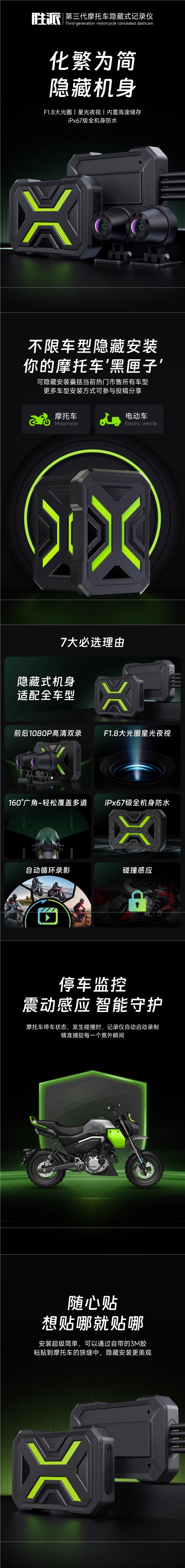 摩托车行车记录仪电动车/机车专用骑行1080高清前后双摄全景新款