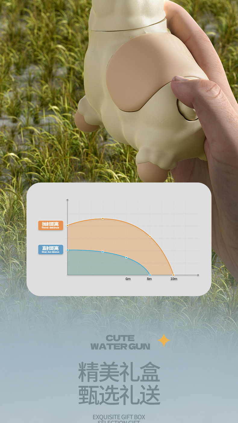 アルパカの水鉄砲は唾を吐きます。アルパカの水鉄砲は手動で押します。