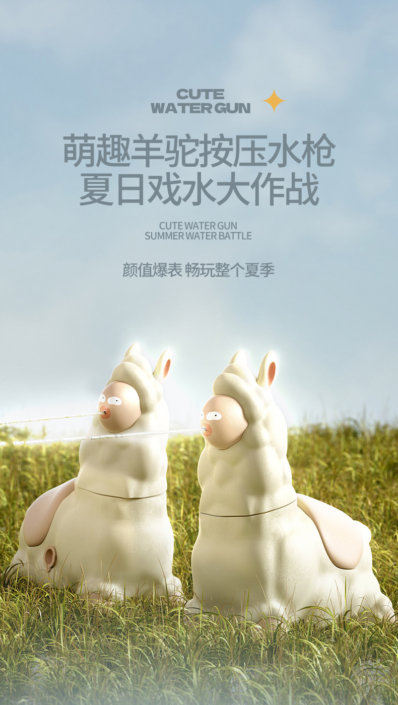 Douyin の同じスタイルの草泥アルパカ水鉄砲プレススイングヘッドトリックおもちゃ屋外露店スプレー小型水鉄砲卸売