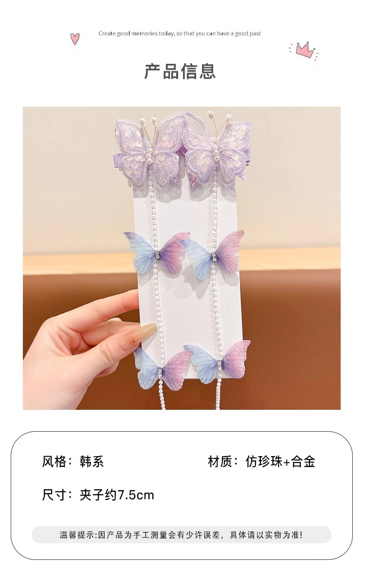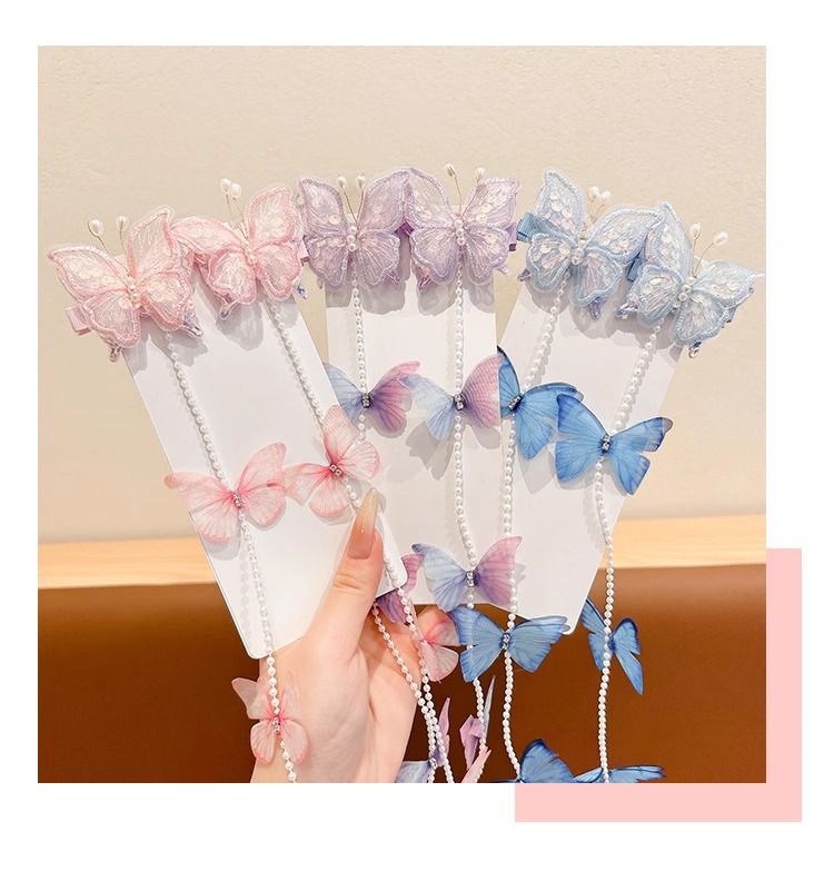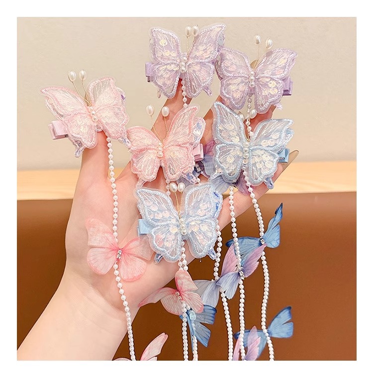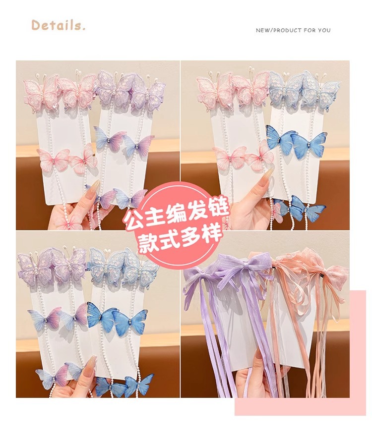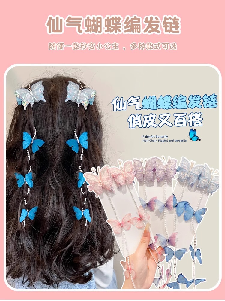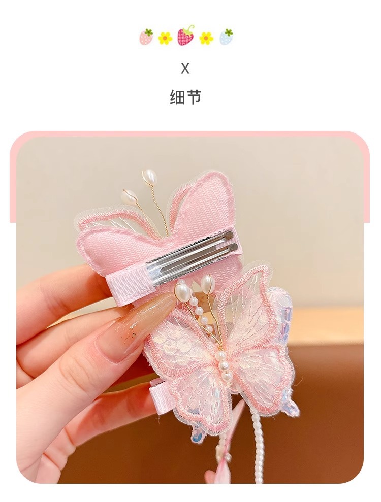 子供用真珠蝶編み髪チェーンヘアクリップ超仙古風ヘアピン甘いフリンジ編み髪ひもお姫様ヘアアクセサリー