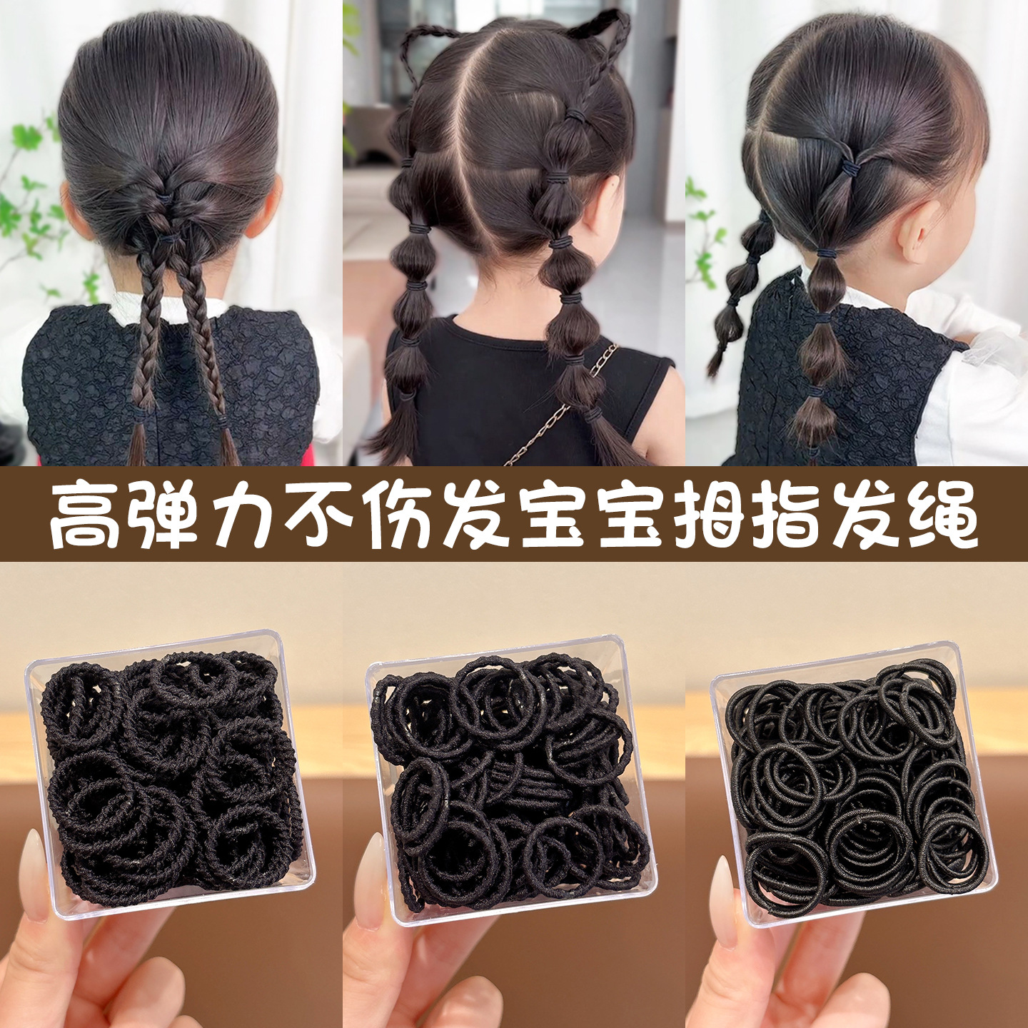 儿童黑色高弹力不伤发拇指发圈女童扎小啾啾发饰小女孩扎马尾头绳