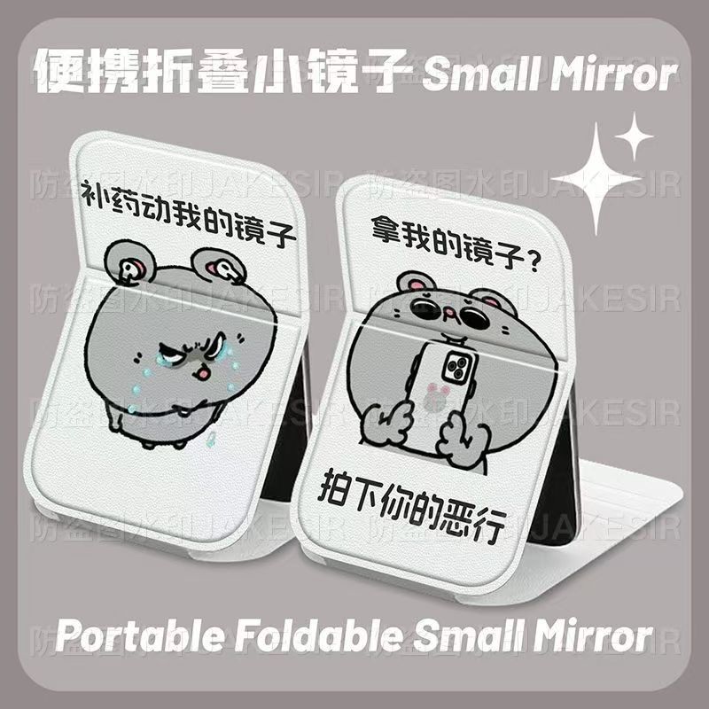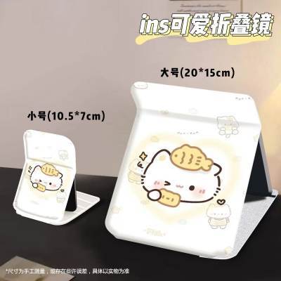 化妆镜可折叠镜子卡通可爱随身携带学生宿舍用办公室桌面镜梳妆镜