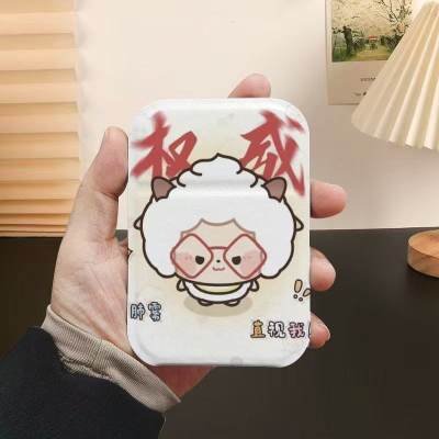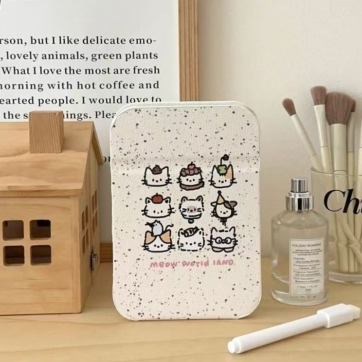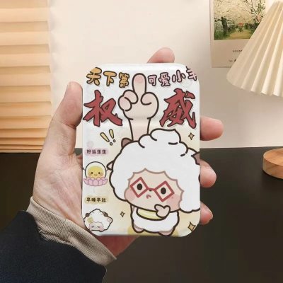 怠惰な羊さんのかわいい折りたたみ式携帯用化粧鏡、旅行用、革製小型鏡、学生寮のデスクトップに軽く置ける