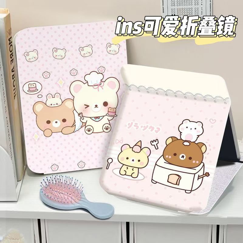 卡通轻松熊折叠化妆镜子梳妆镜学生桌面用随身收纳补妆镜便携式