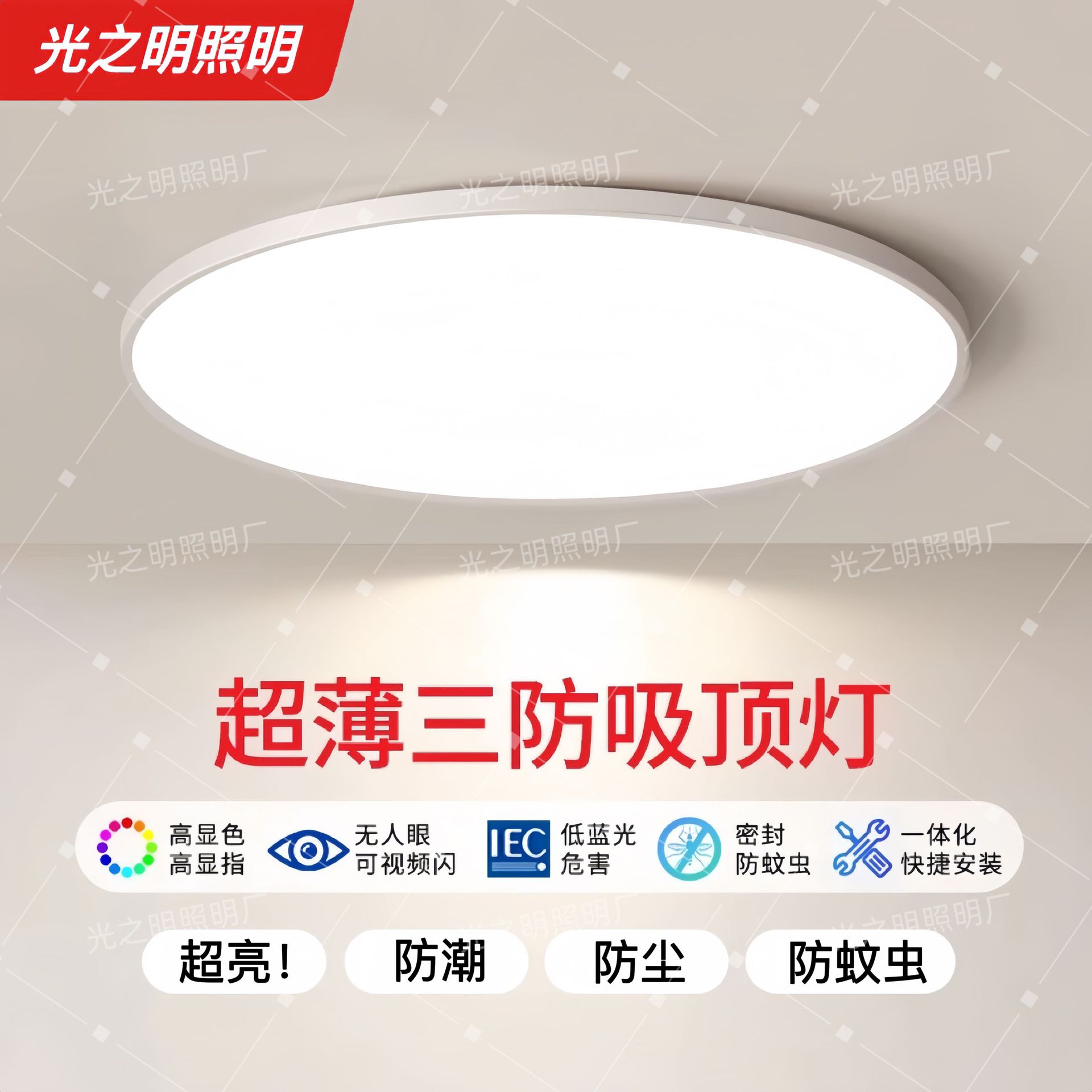工厂批发 超薄三防吸顶灯LED圆形防蚊房间卧室灯阳台楼梯间过道灯