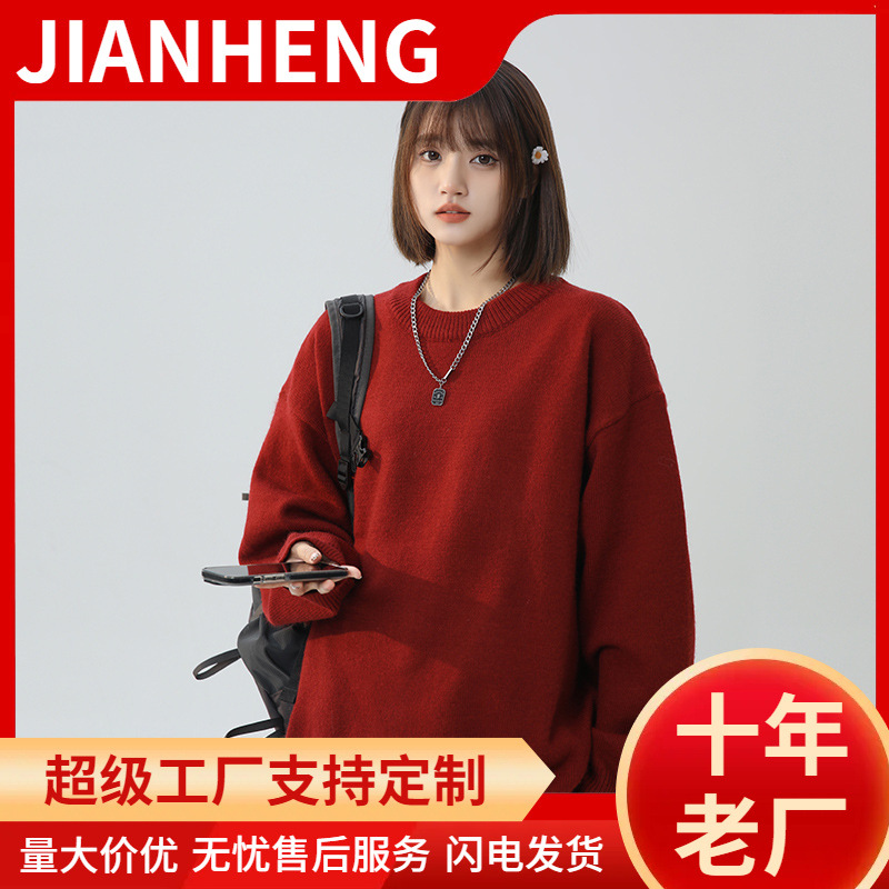 简恒新年毛衣本命年红色套头毛衣男女秋冬情侣加厚慵懒针织衫外套