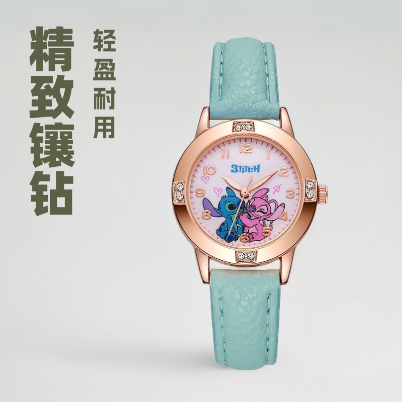 ローズゴールドダイヤモンド付きレザーベルト スティッチウォッチ 学生・子供用腕時計 レディース クォーツ時計 高品質 卸売