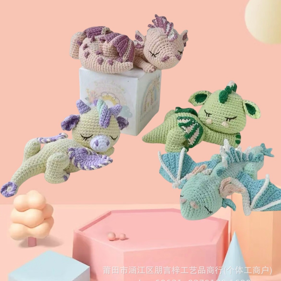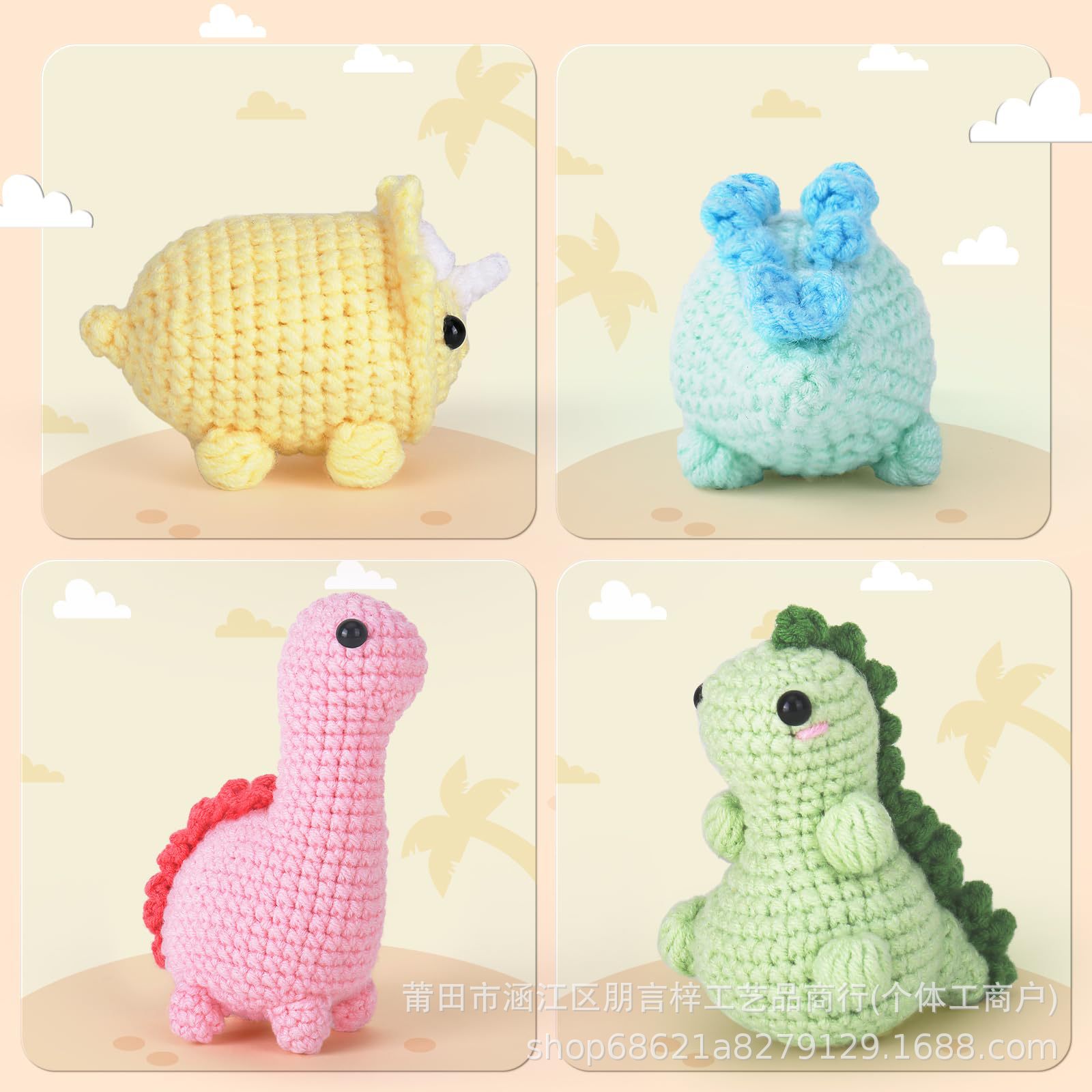 跨境新品玩偶钩针钩织手工编织材料包四色小恐龙材料包大全