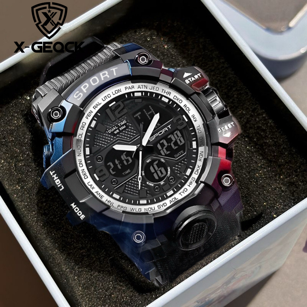 外国貿易の爆発的な流行の個性の多機能の腕時計の男子学生の双顕の防水の夜光の屋外のスポーツの電子の腕時計