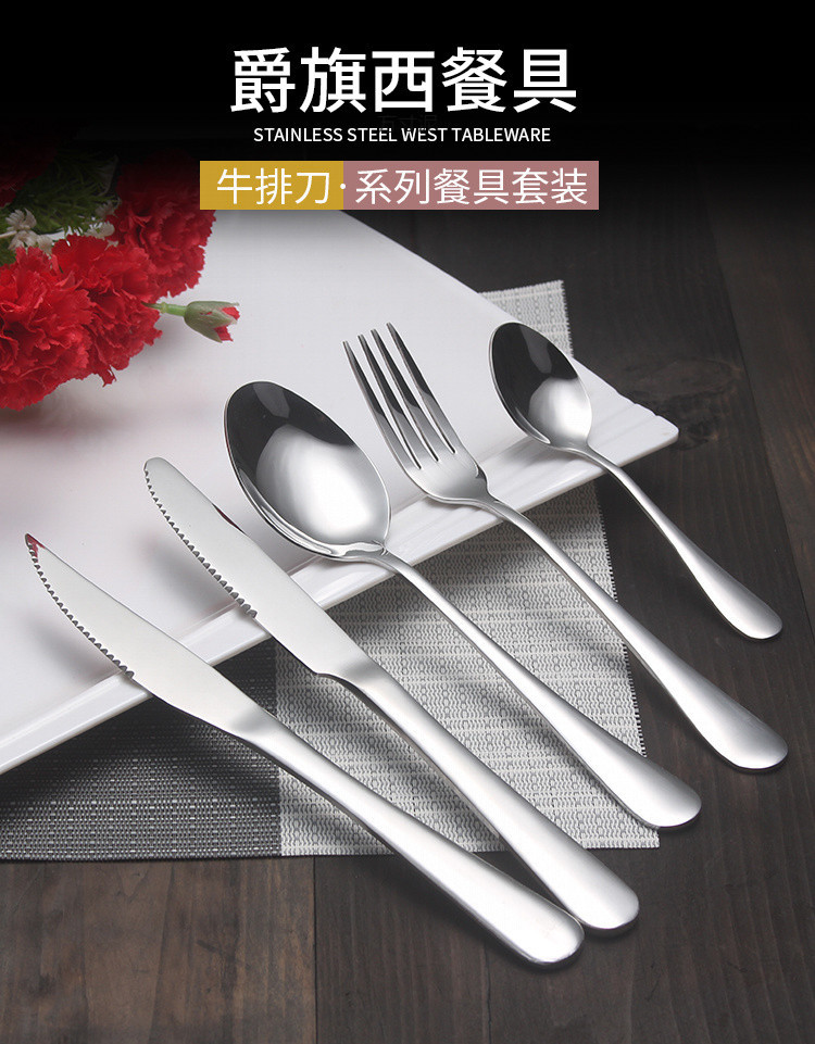 ステンレス洋食器 ナイフ・フォーク・スプーン 3点セット ステーキナイフ・フォーク 0.1kg点セット 家庭用 ヨーロピアンスタイル 増厚工場